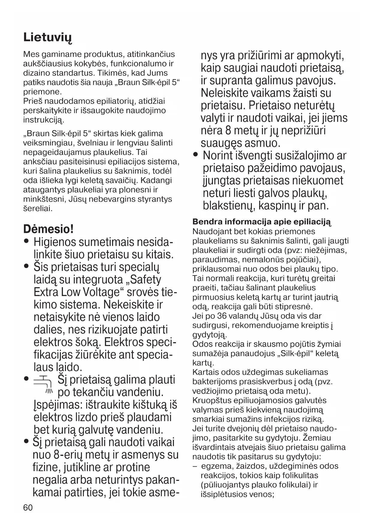 Prieš naudodamos epiliatorių, atidžiai