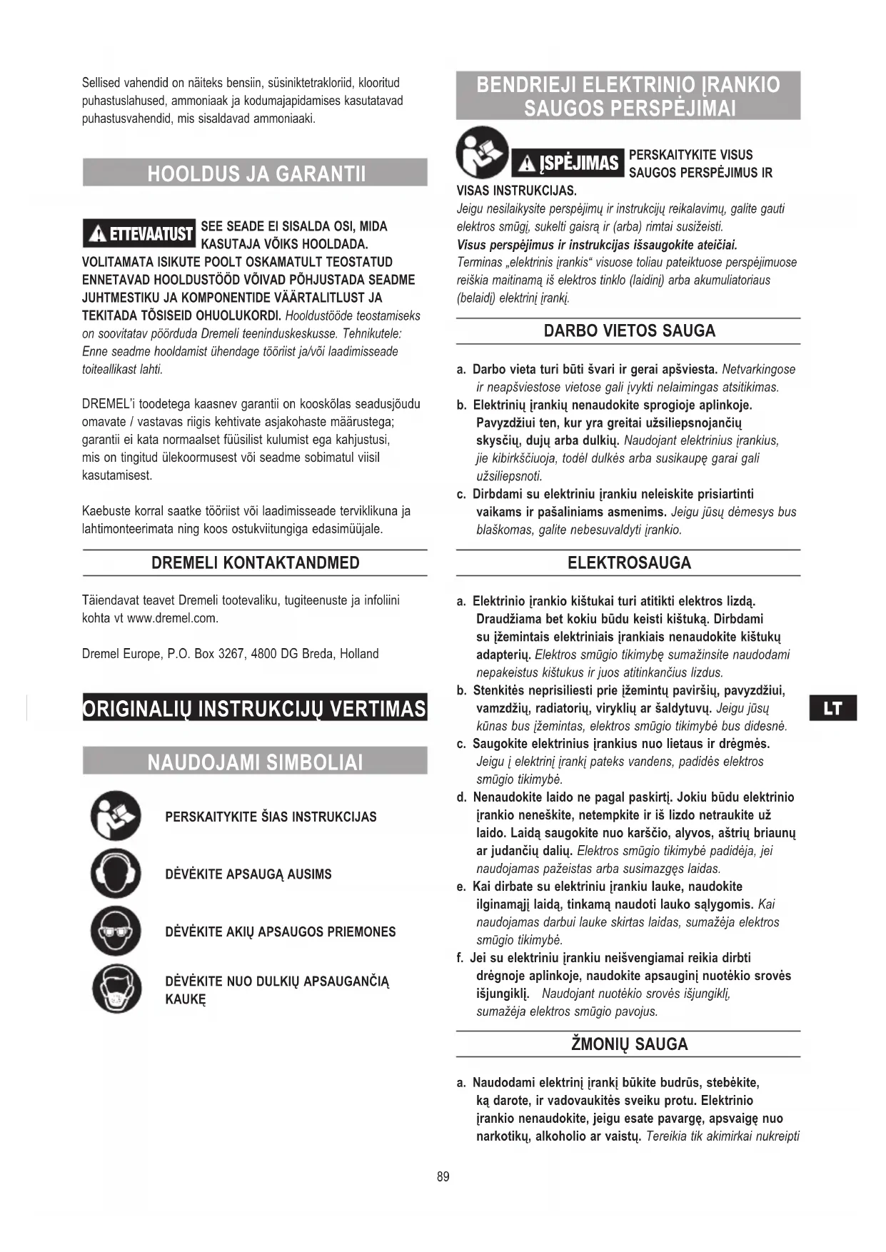 Originalių instrukcijų vertimas 89
