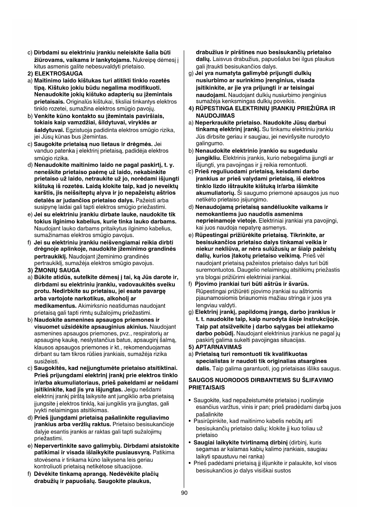 c) Dirbdamisuelektriniuįrankiuneleiskitešaliabūti