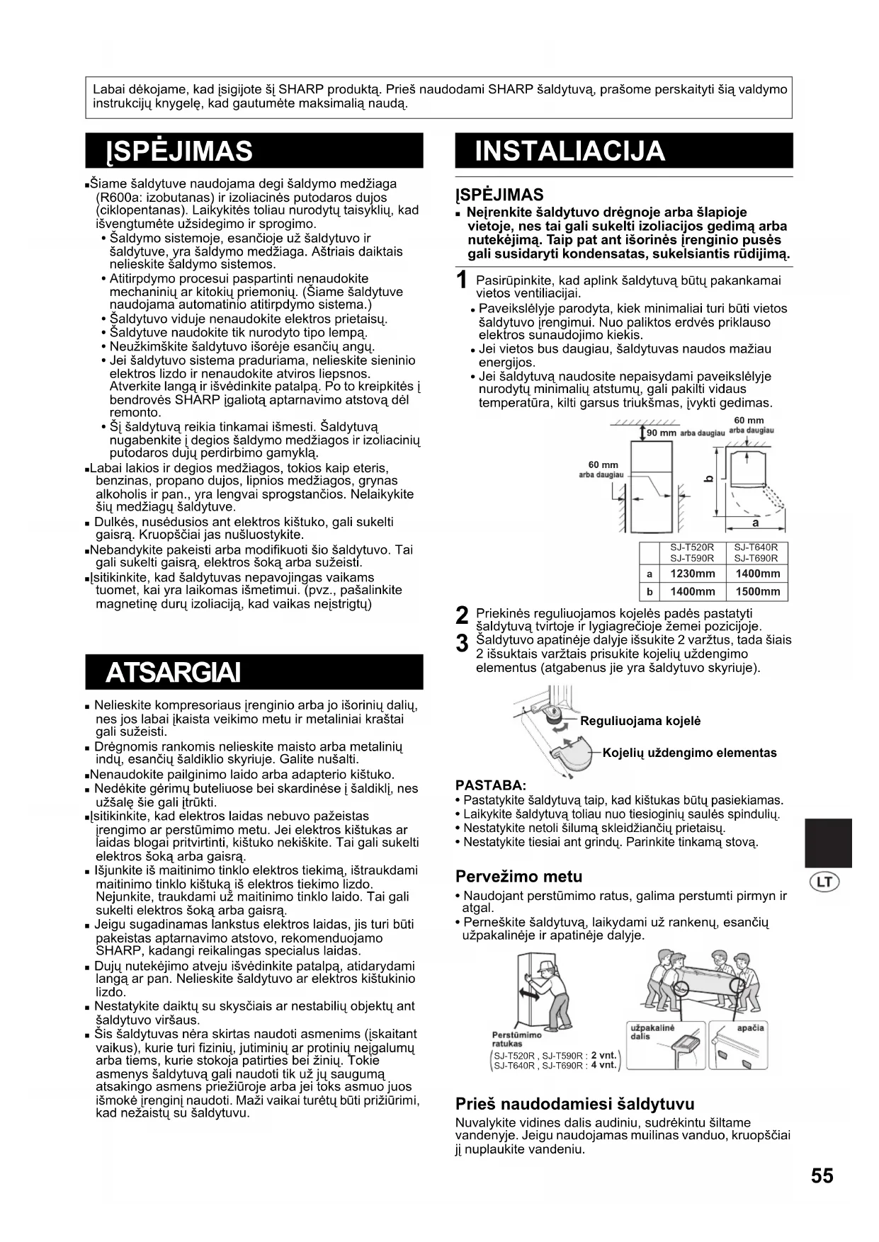 Labai dėkojame, kad įsigijote šį SHARP produktą. Prieš naudodami SHARP šaldytuvą, prašome perskaityti šią valdymo