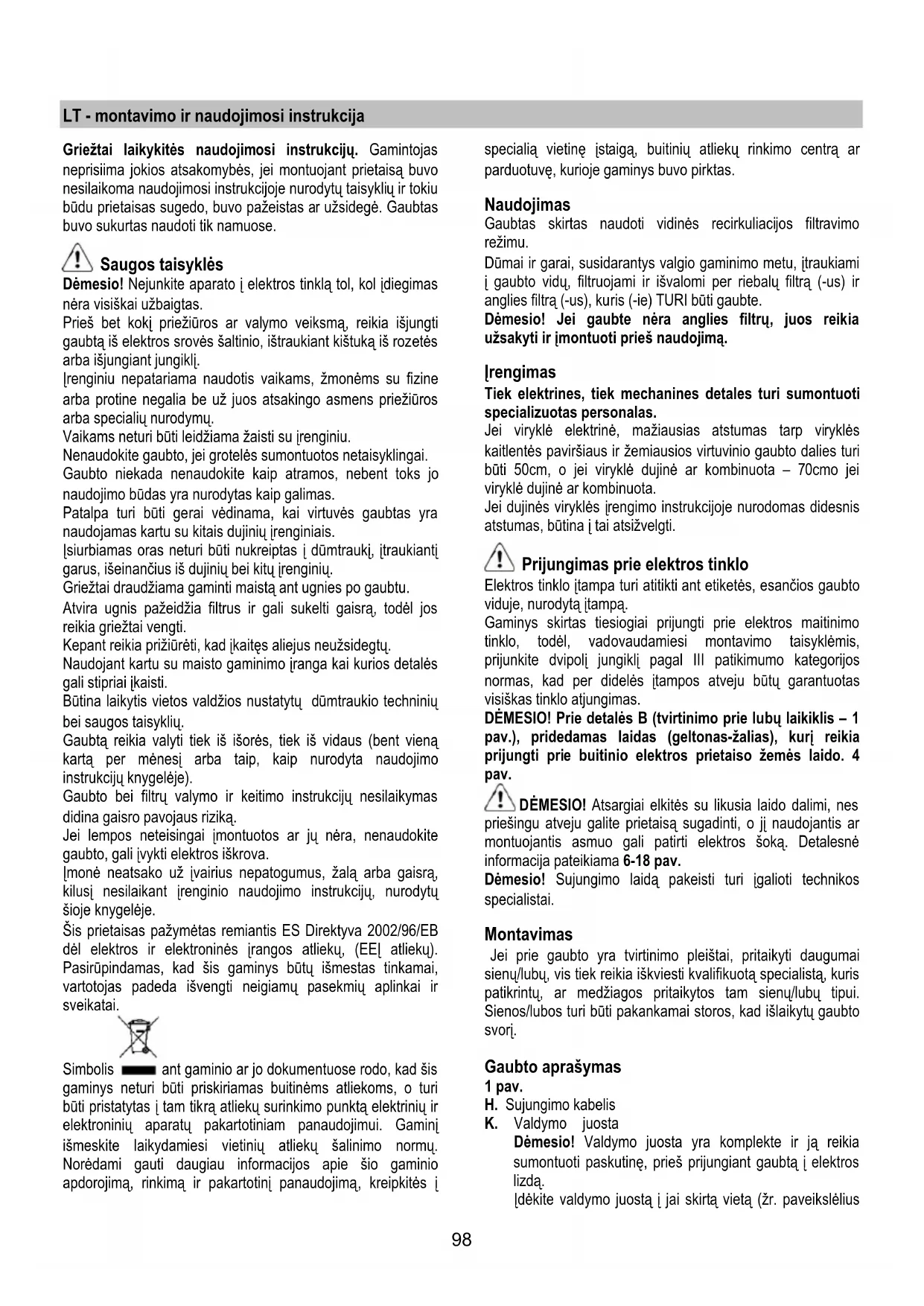 anglies filtrą (-us), kuris (-ie) TURI būti gaubte.