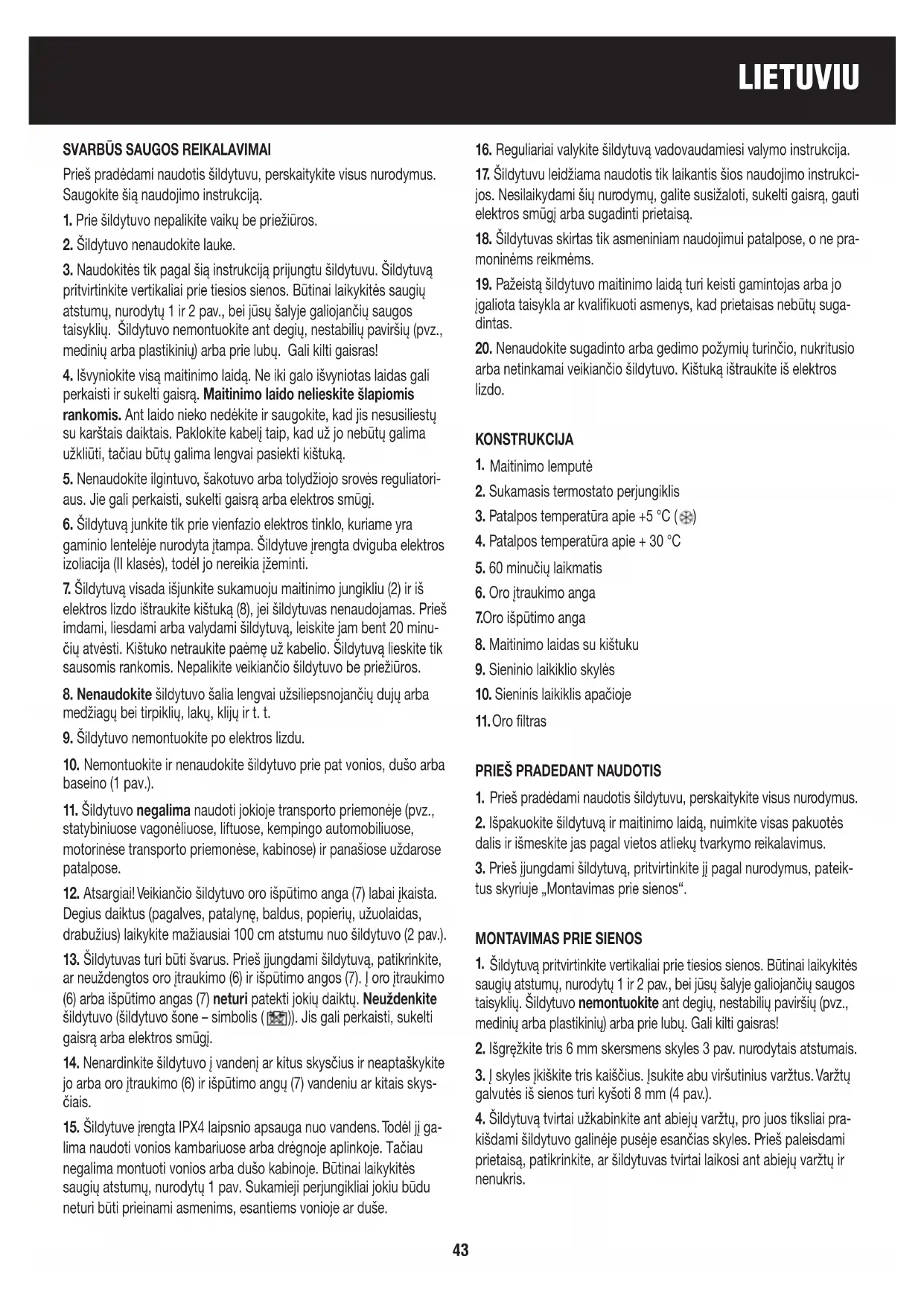 17. Šildytuvu leidžiama naudotis tik laikantis šios naudojimo instrukci-