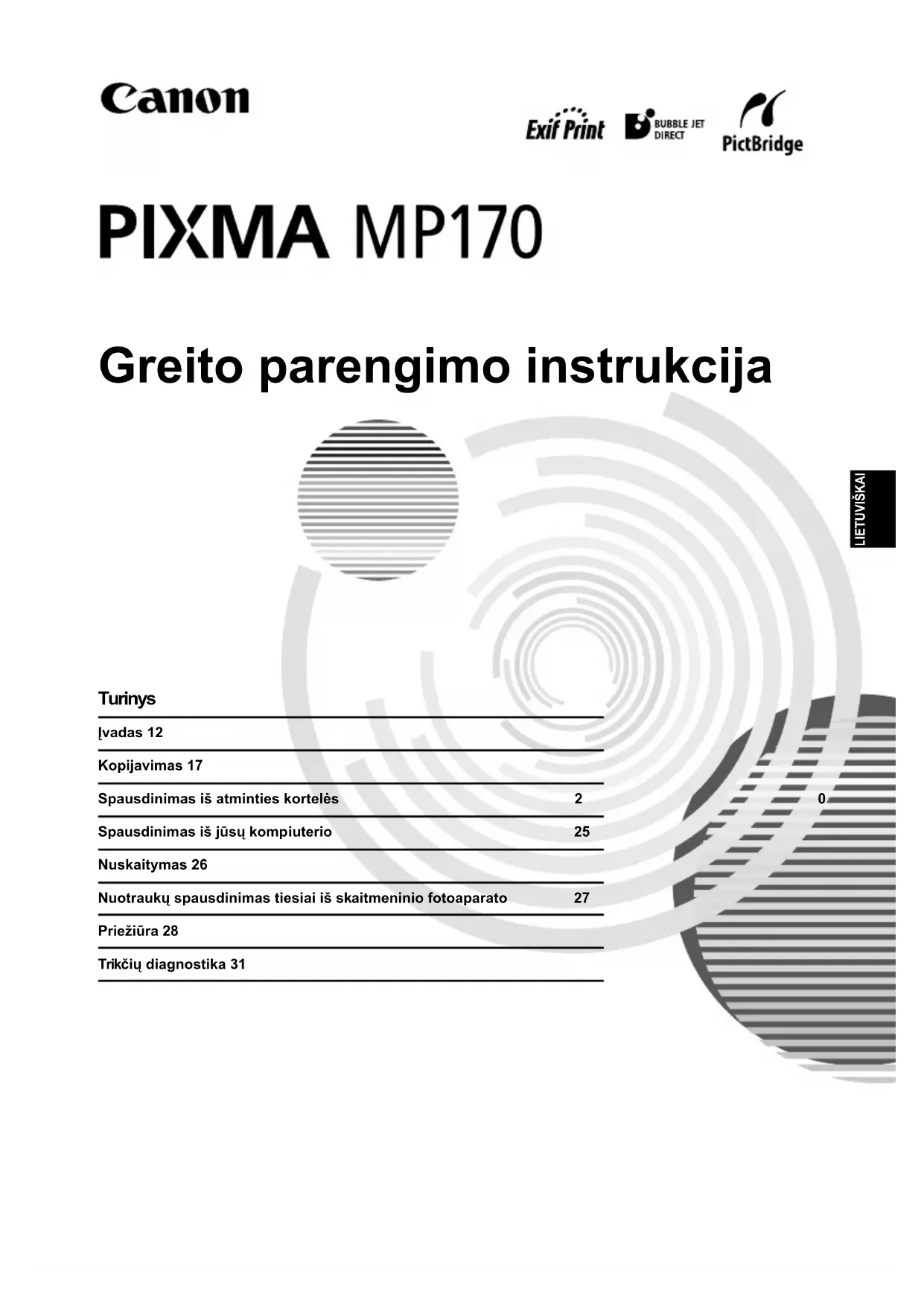 Pixma MP170 - Spausdintuvas CANON - Nemokama naudojimo instrukcija