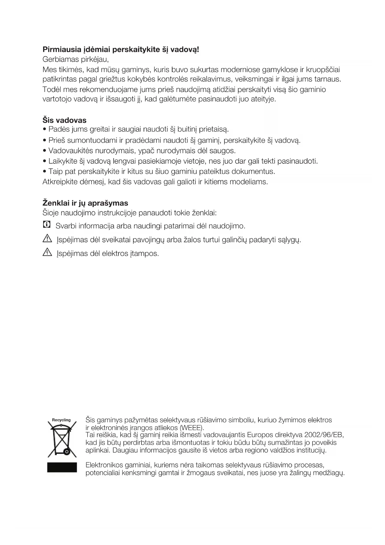 - Atidavus šį gaminį kitiems, naujam gaminio savininkui reikia atiduoti ir šią naudojimo instrukciją.