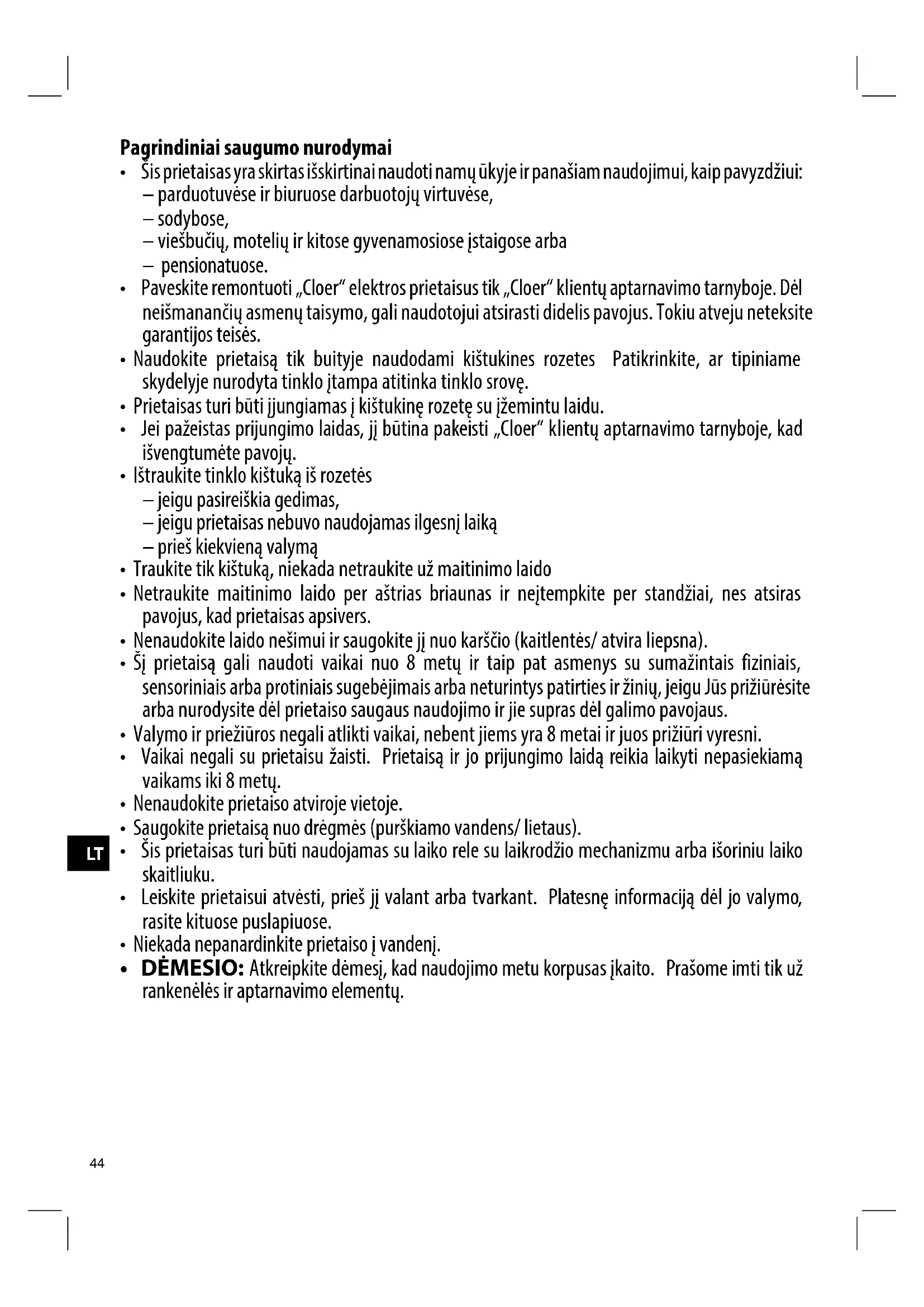 - Vaikai negali su prietaisu žaisti. Prietaisą ir jo prijungimo laidą reikia laikyti nepasiekiamą vaikams iki 8 metų.