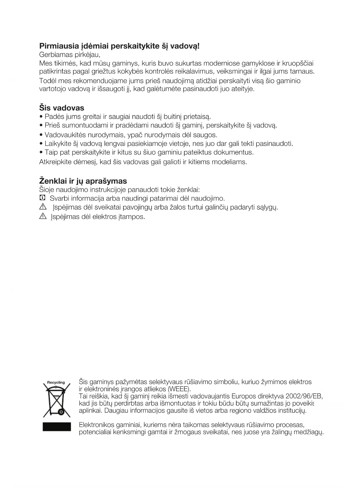- Padės jums greitai ir saugiai naudoti šį buitinį prietaisą.