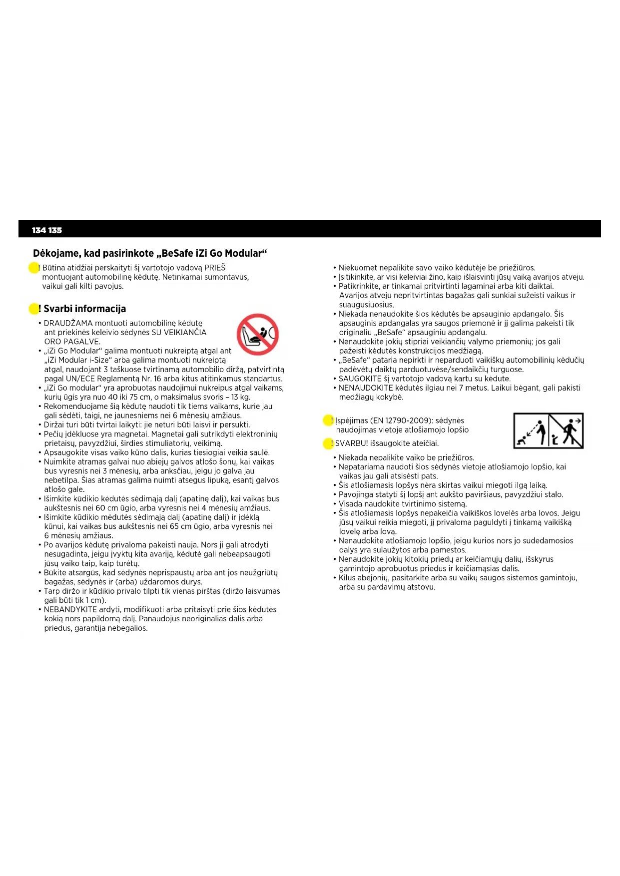 - NEBANDYKITE ardyti, modifikuoti arba pritaisyti prie šios kėdutės kokią nors papildomą dalį. Panaudojus neoriginalias dalis arba priedus, garantija nebegalios. Dėkojame, kad pasirinkote „BeSafe iZi Go Modular“ ! Būtina atidžiai perskaityti šį vartotojo vadovą PRIEŠ montuojant automobilinę kėdutę. Netinkamai sumontavus, vaikui gali kilti pavojus.