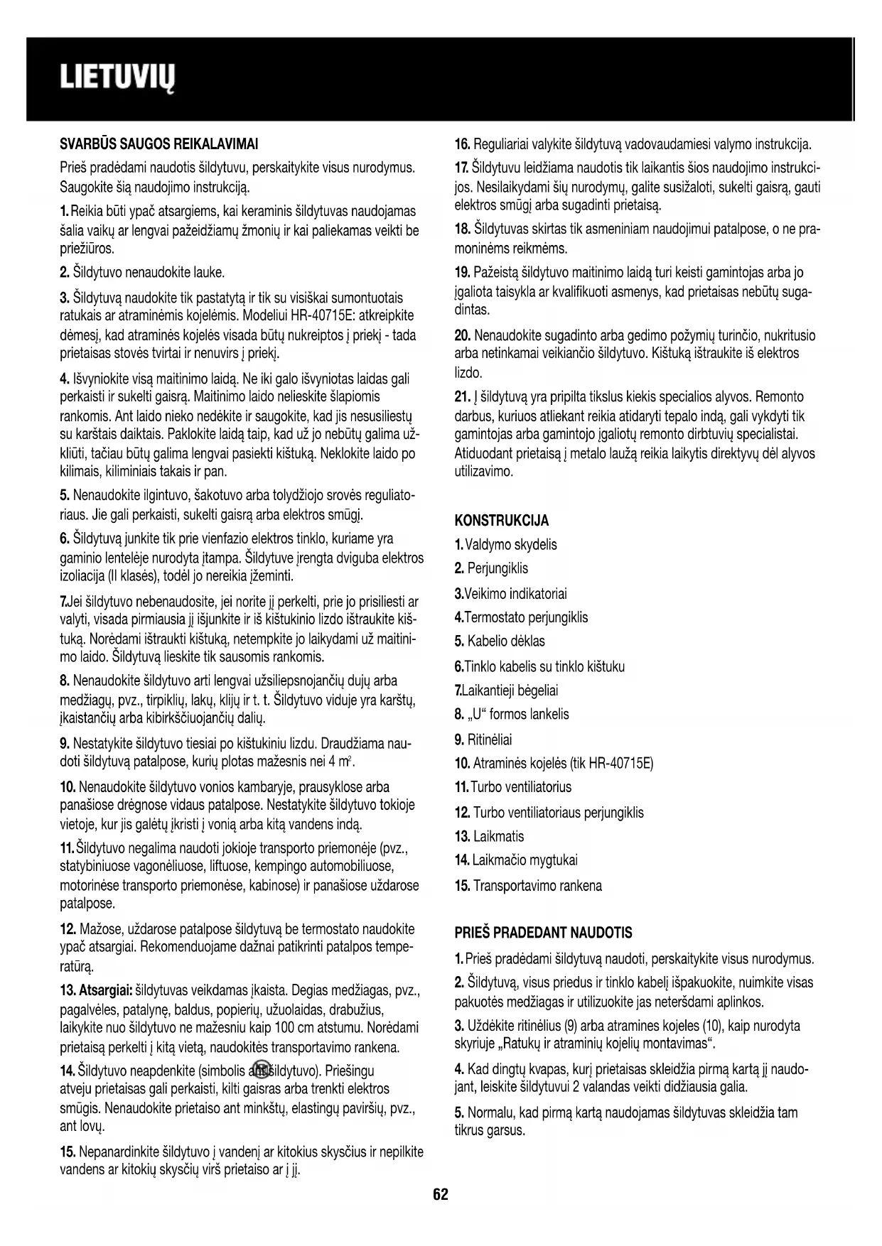 1. Prieš pradėdami šildytuvą naudoti, perskaitykite visus nurodymus.