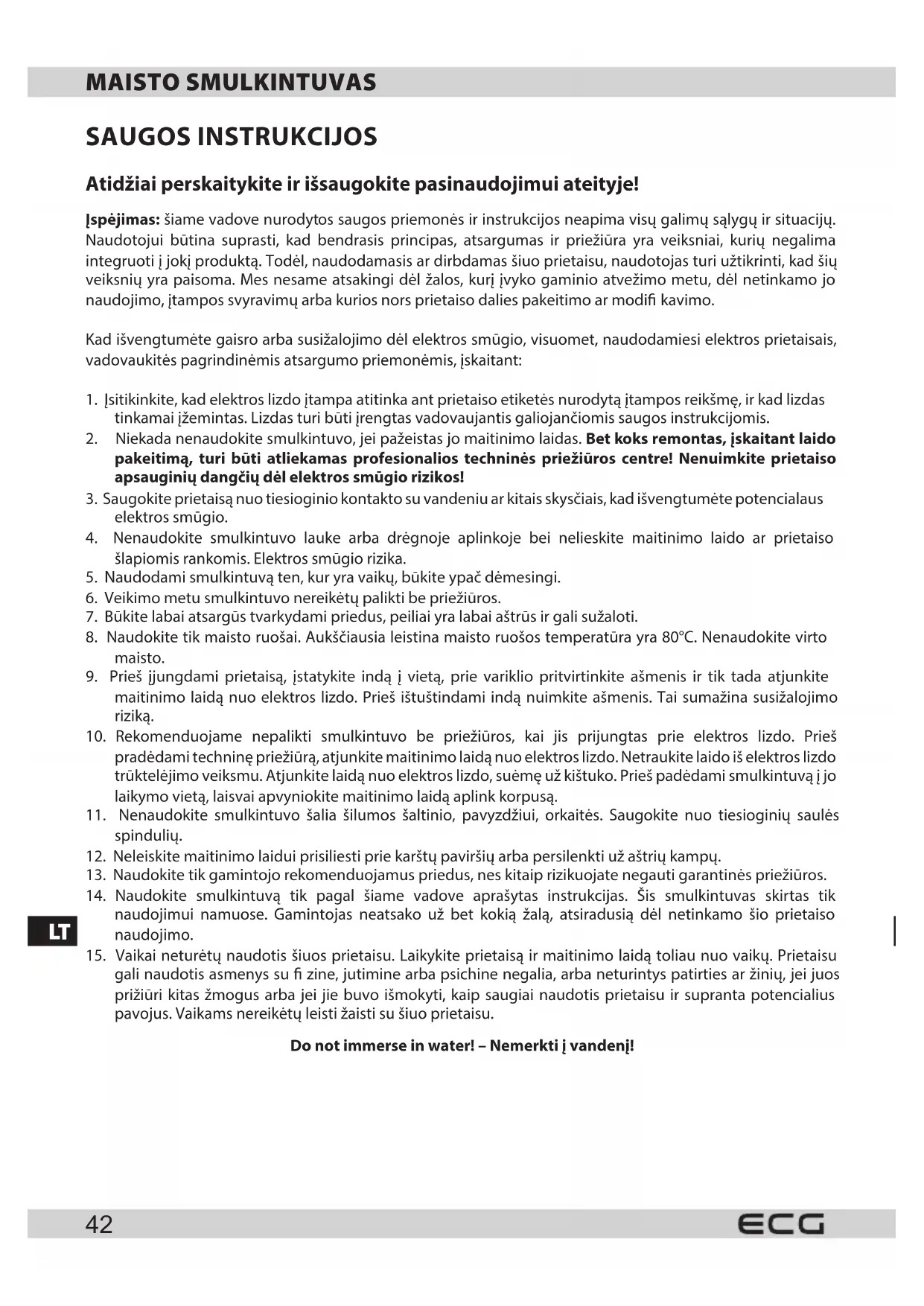 Do not immerse in water! - Nemerkti j vandenj!