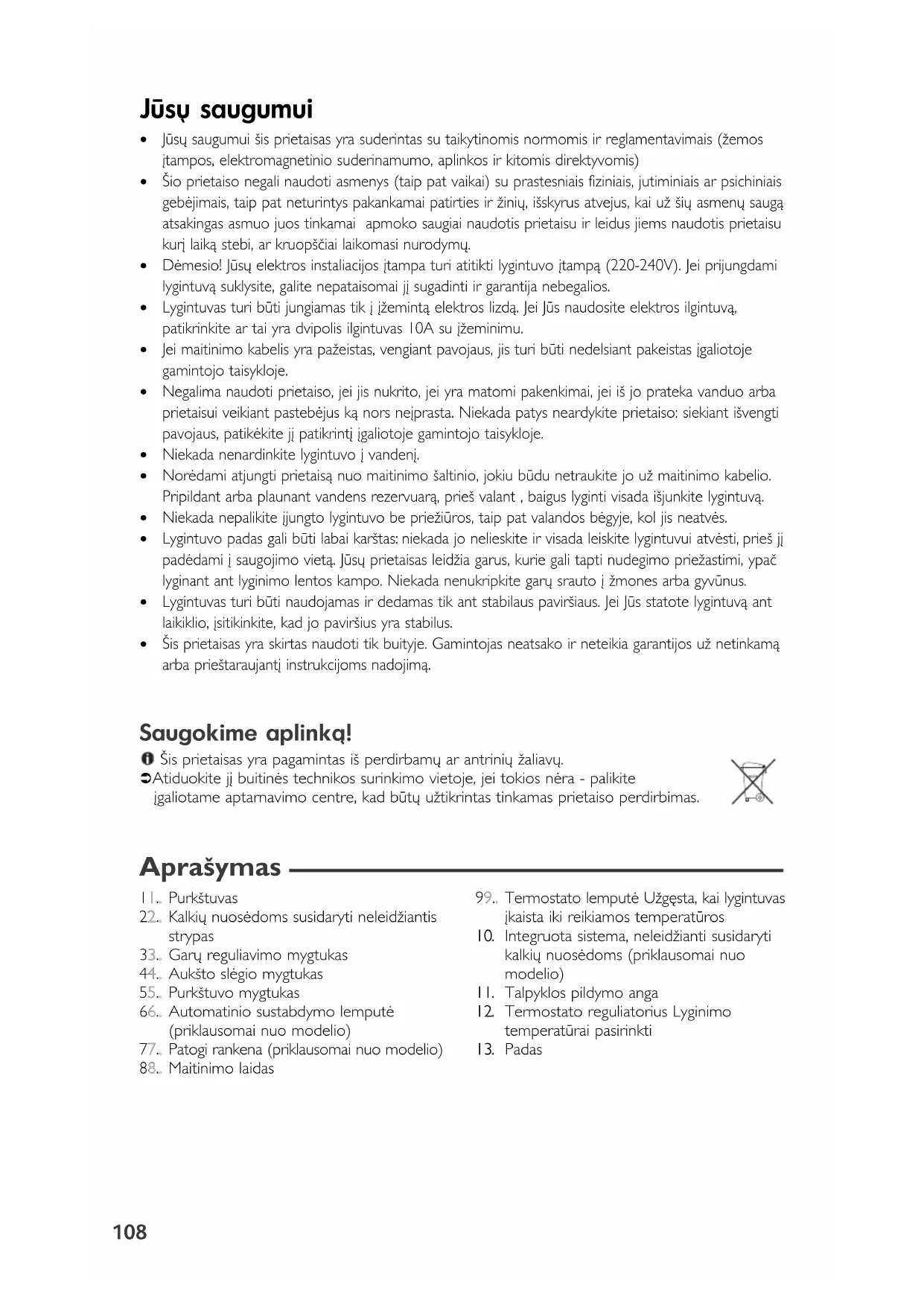 - is prietaisas yra pagamintas i‰ perdirbam˜ ar antrini˜ Ïaliav˜. Ü Atiduokite j∞ buitinòs technikos surinkimo vietoje, jei tokios nòra - palikite ∞galiotame aptarnavimo centre, kad bt˜ uÏtikrintas tinkamas prietaiso perdirbimas. Apra‰ymas
