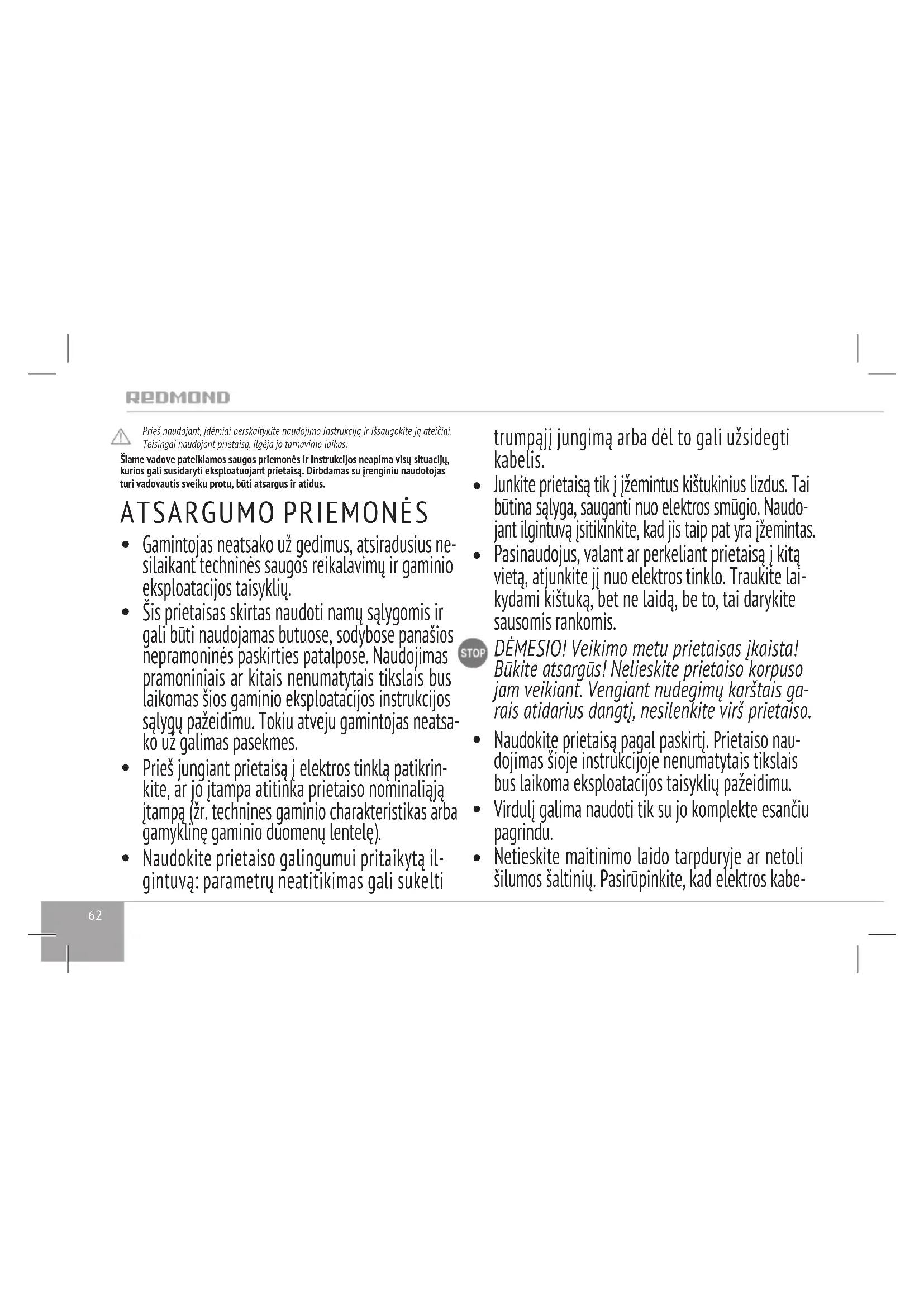 NAUDOJIMO INSTRUKCIJA RKM170SE Redmond