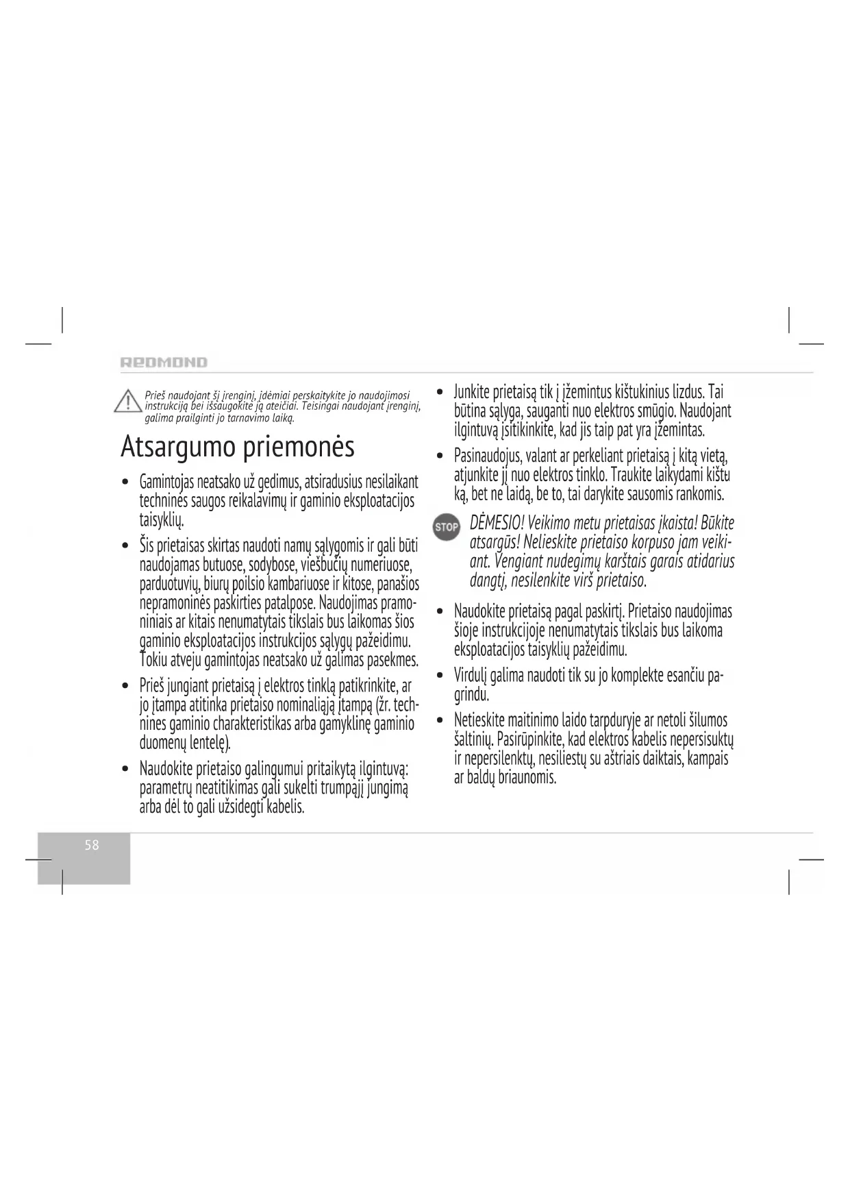 Gamintojas neatsako už gedimus, atsiradusius nesilaikant techninės saugos reikalavimų ir gaminio eksploatacijos taisyklių.