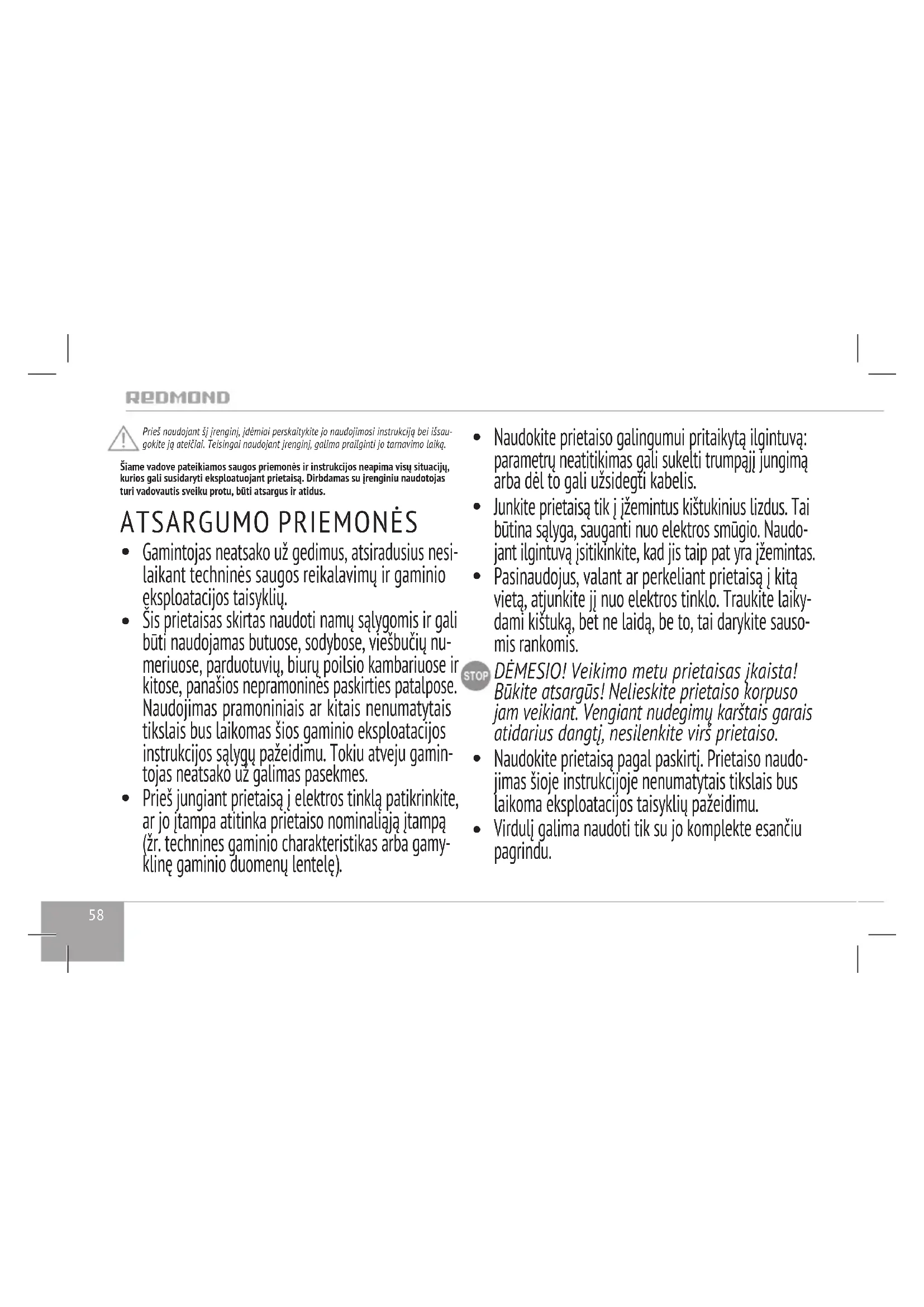 NAUDOJIMO INSTRUKCIJA RKG176E Redmond