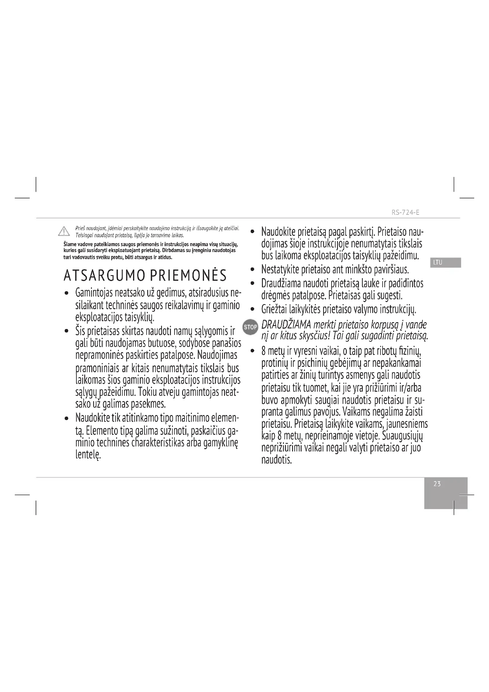 NAUDOJIMO INSTRUKCIJA RS724E Redmond