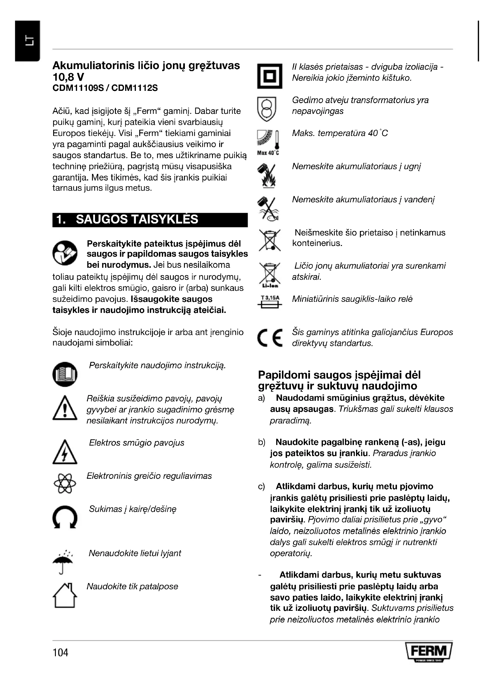CDM1112S - Suktuvas Ferm - Nemokama naudojimo instrukcija