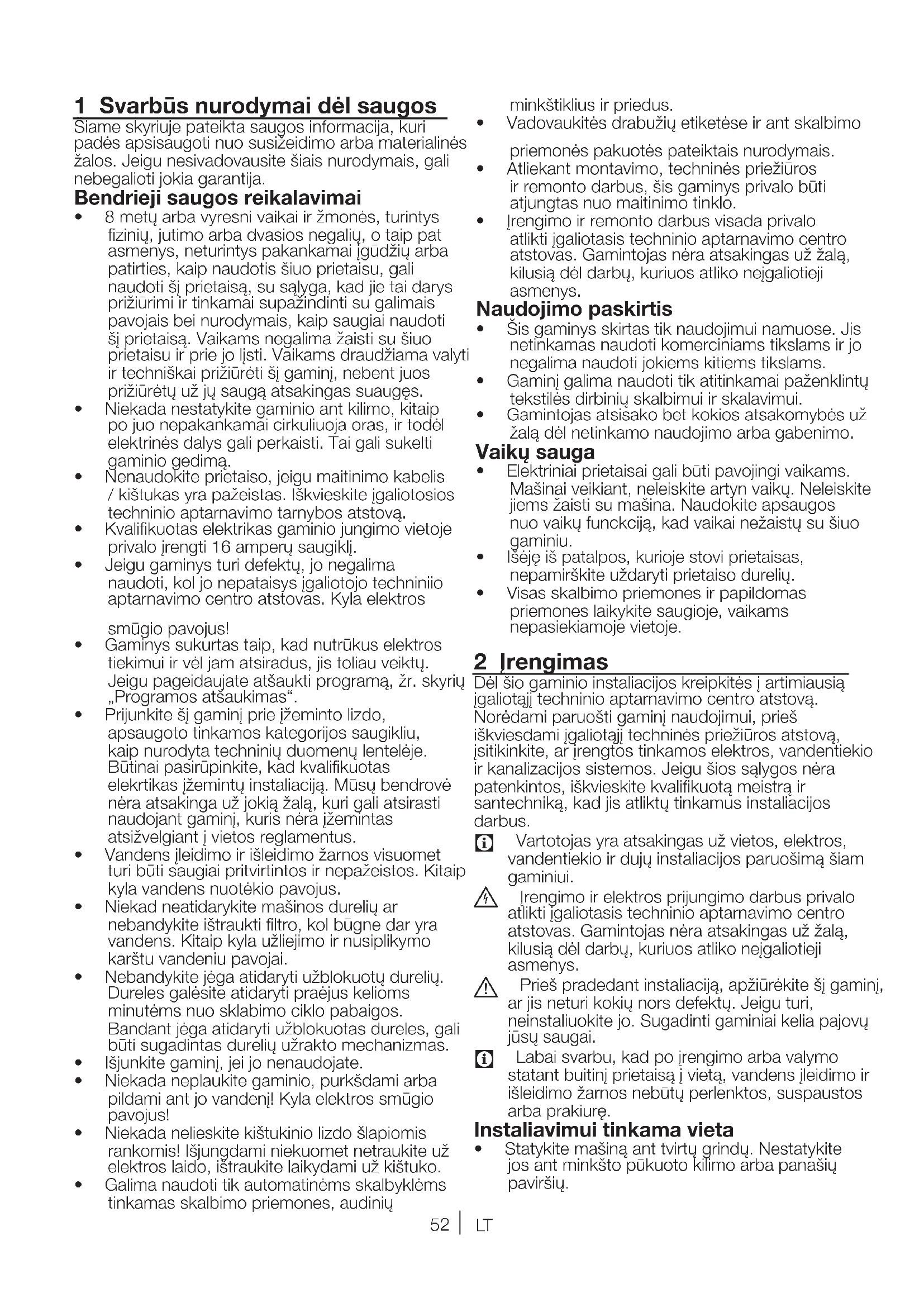 Vartotojasyraatsakingasužvietos,elektros, vandentiekioirdujųinstaliacijosparuošimąšiam gaminiui.