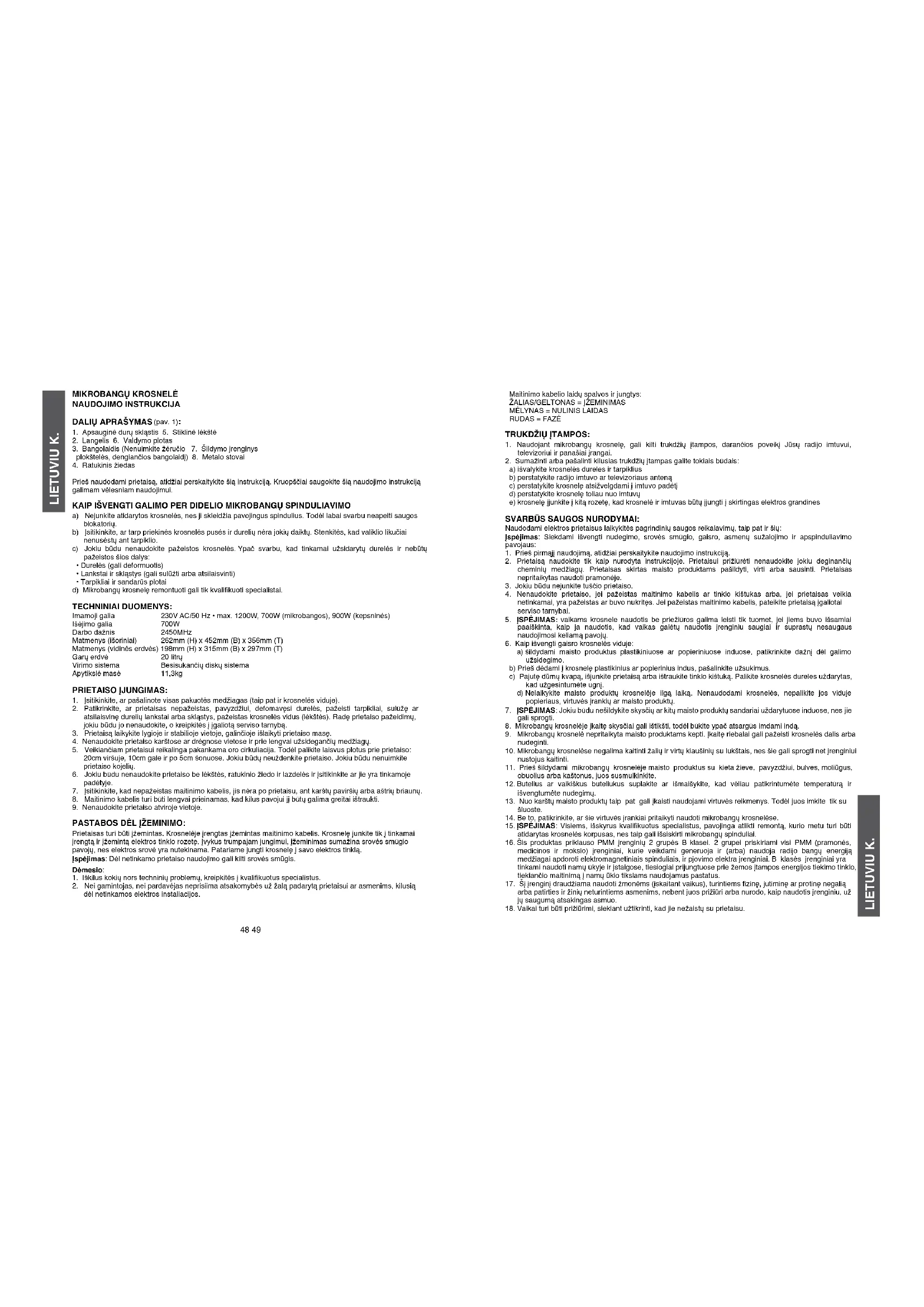23. Mikrobangų krosnelės negalima dėti į spintelę.