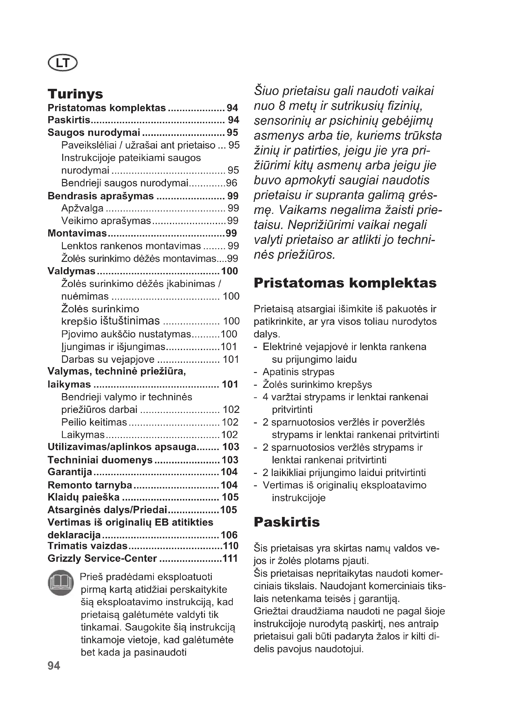 NAUDOJIMO INSTRUKCIJA ERM 15352 G Grizzly
