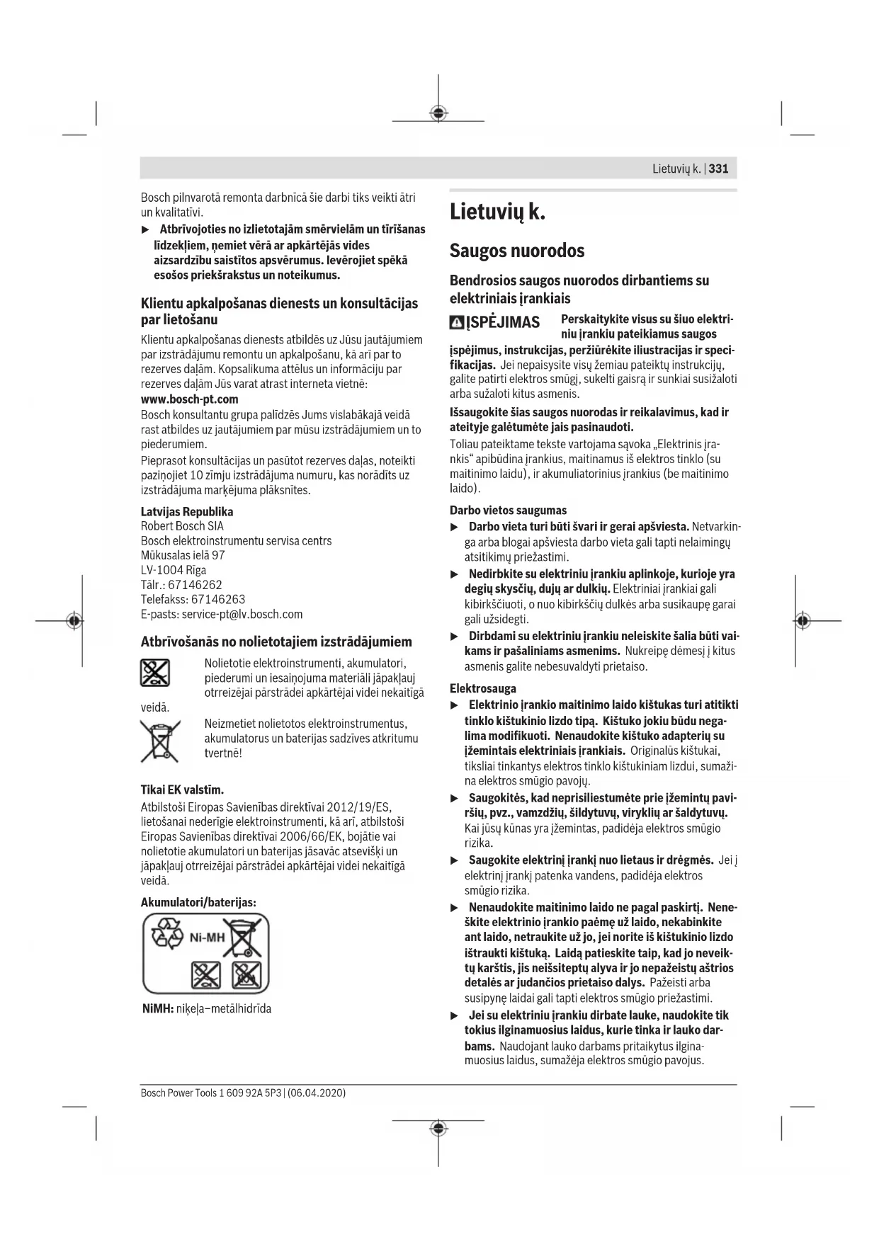 išmatuota, esant 20–25°C, su akumuliatoriumi2 607 335 685. B) ribota galia, esant temperatūrai <0 °C Ni-MH akumuliatorių baterija 9,6 12,0 14,4 Gaminio numeris
