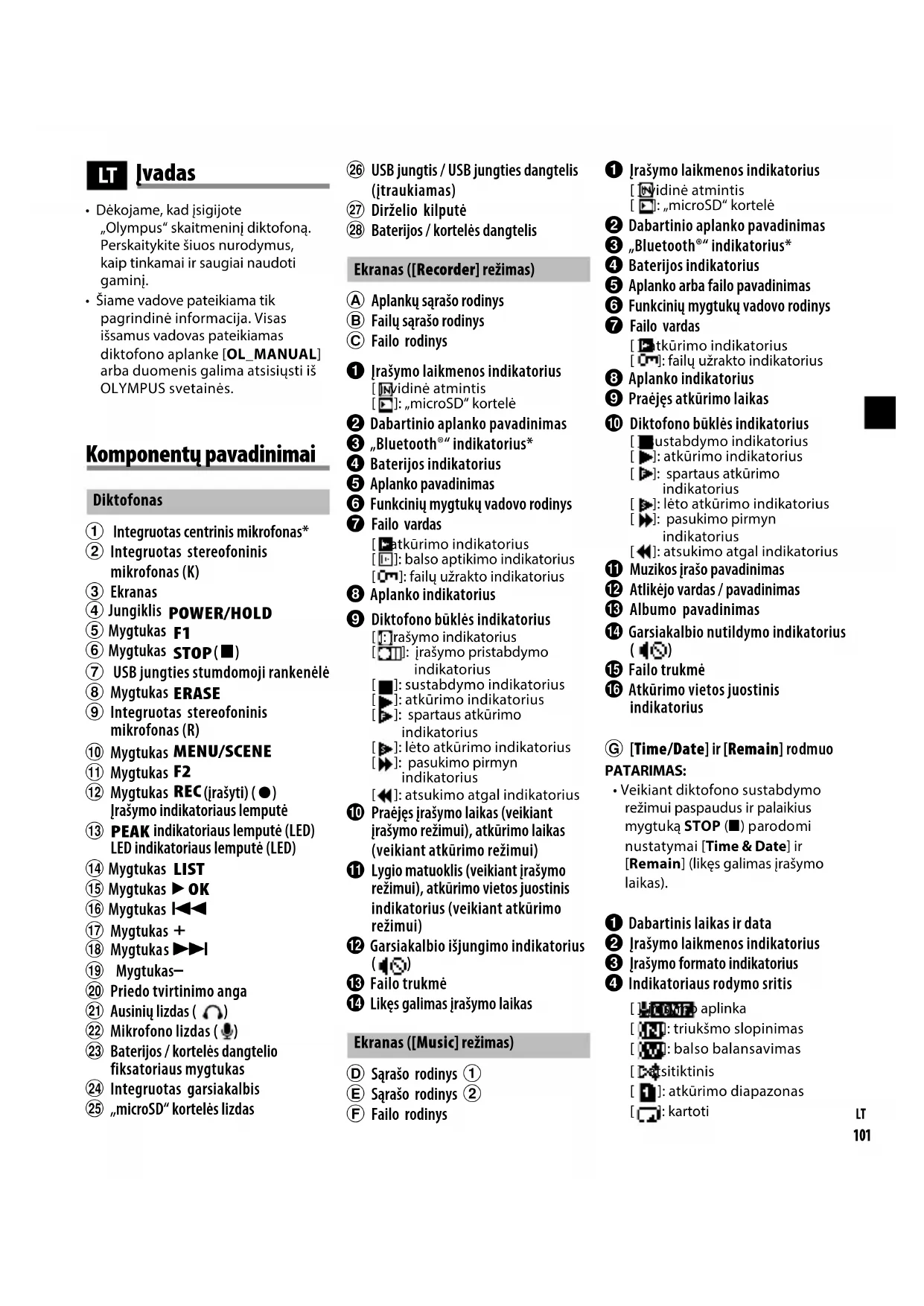 - Šiame vadove pateikiama tik pagrindinė informacija. Visas išsamus vadovas pateikiamas diktofono aplanke [OL_MANUAL] arba duomenis galima atsisiųsti iš OLYMPUS svetainės. Įvadas