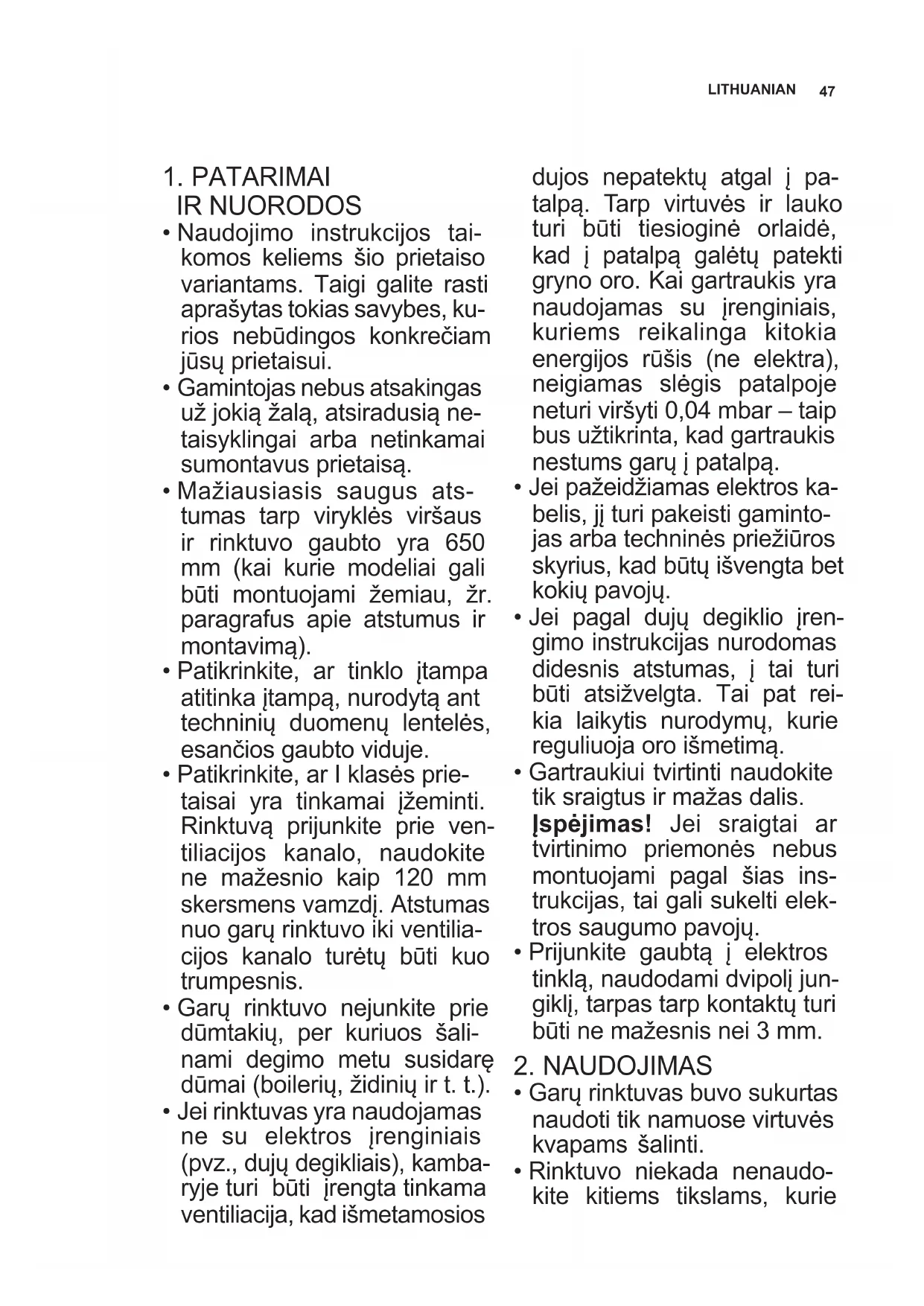 - Garų rinktuvo nejunkite prie dūmtakių, per kuriuos šali- nami degimo metu susidarę dūmai (boilerių, židinių ir t. t.).