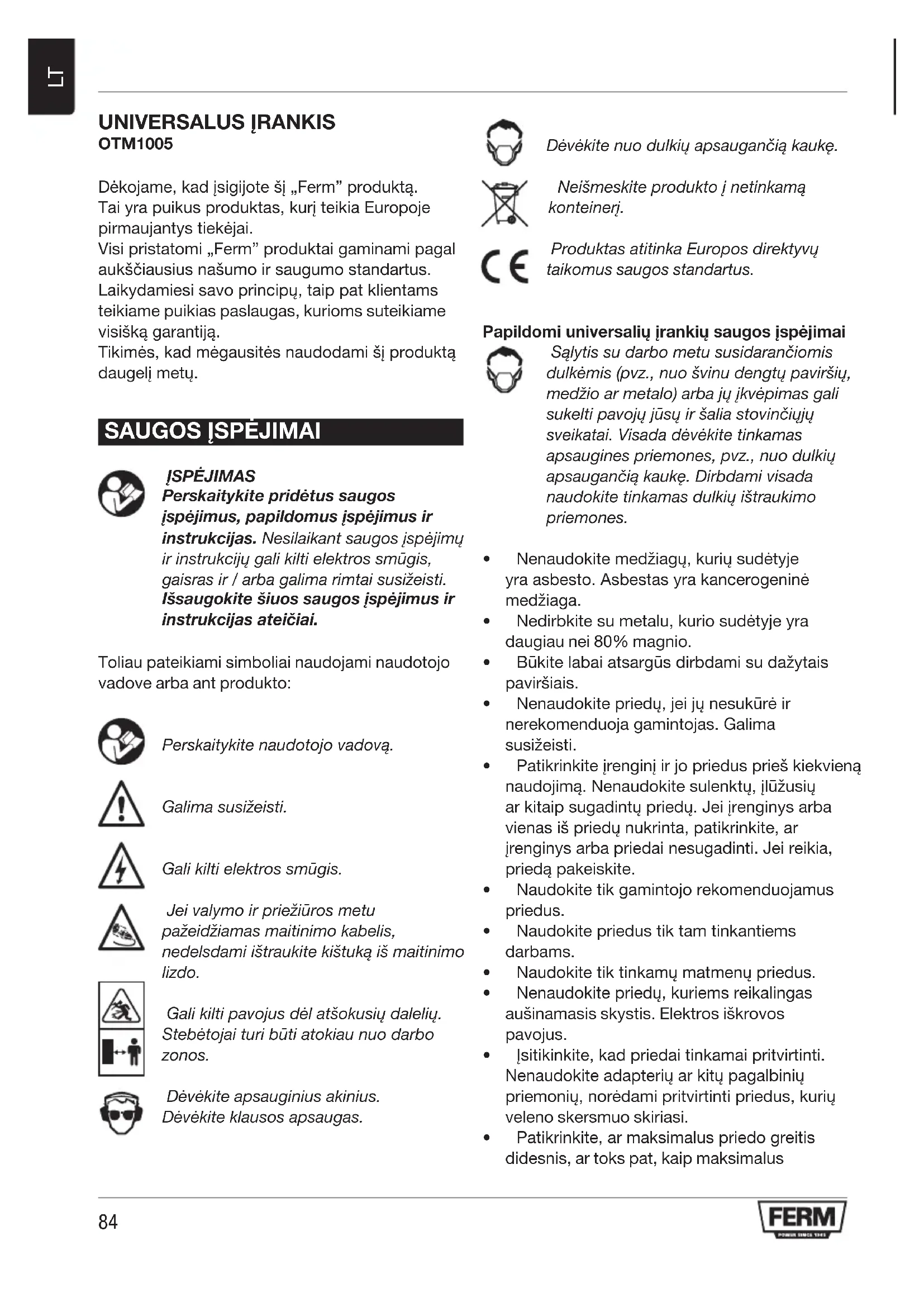 OTM1005 - Daugiafunkciai įrankiai Ferm - Nemokama naudojimo instrukcija