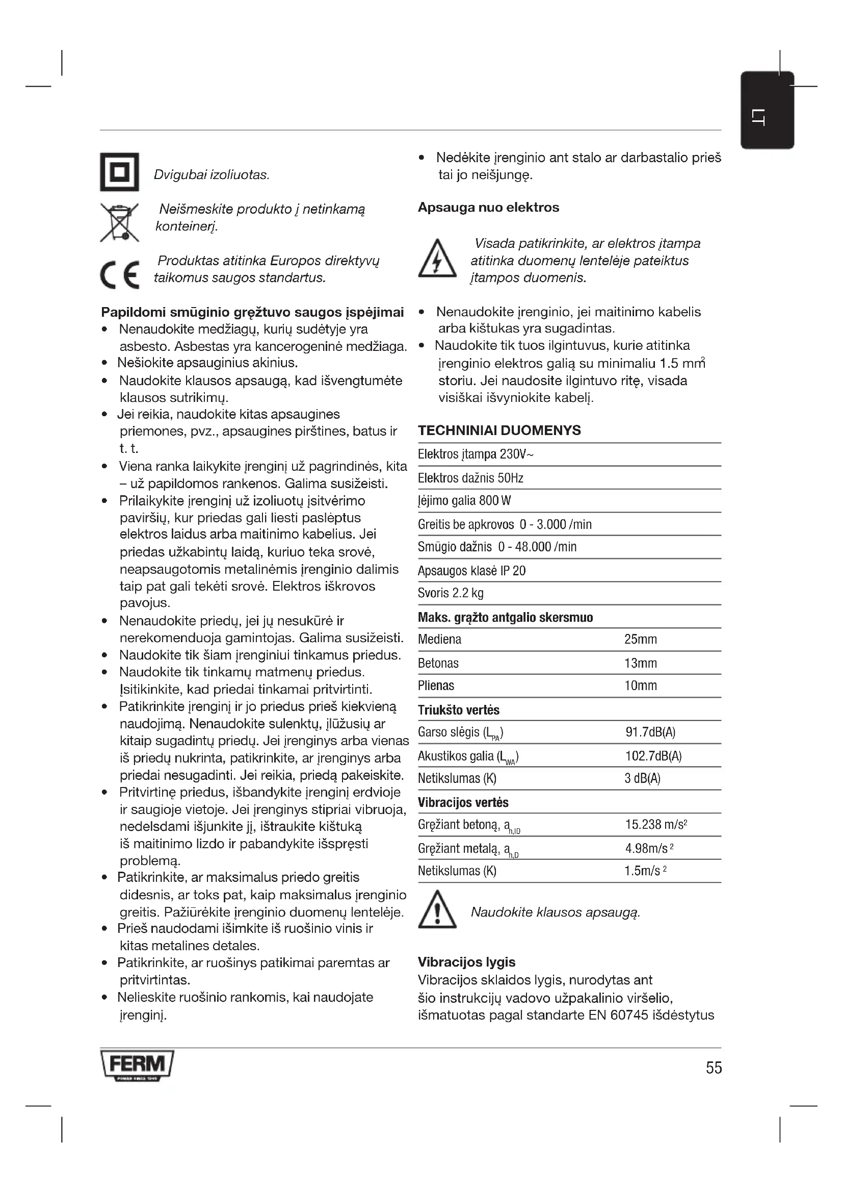 NAUDOJIMO INSTRUKCIJA PDM1052 Ferm