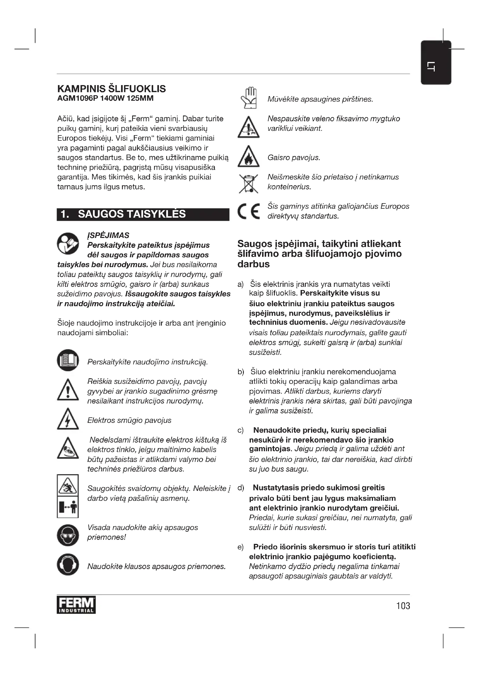 NAUDOJIMO INSTRUKCIJA AGM1096P Ferm