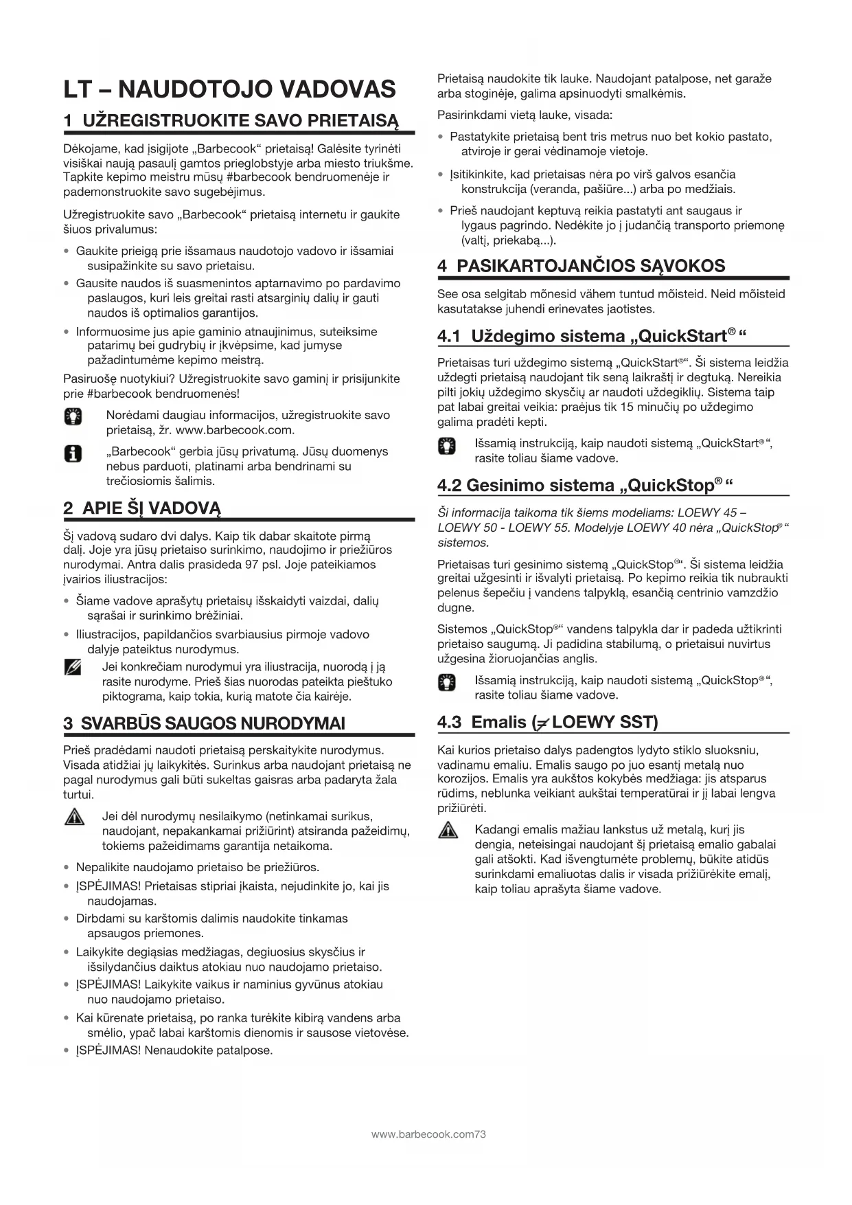 NAUDOJIMO INSTRUKCIJA Loewy SST BARBECOOK