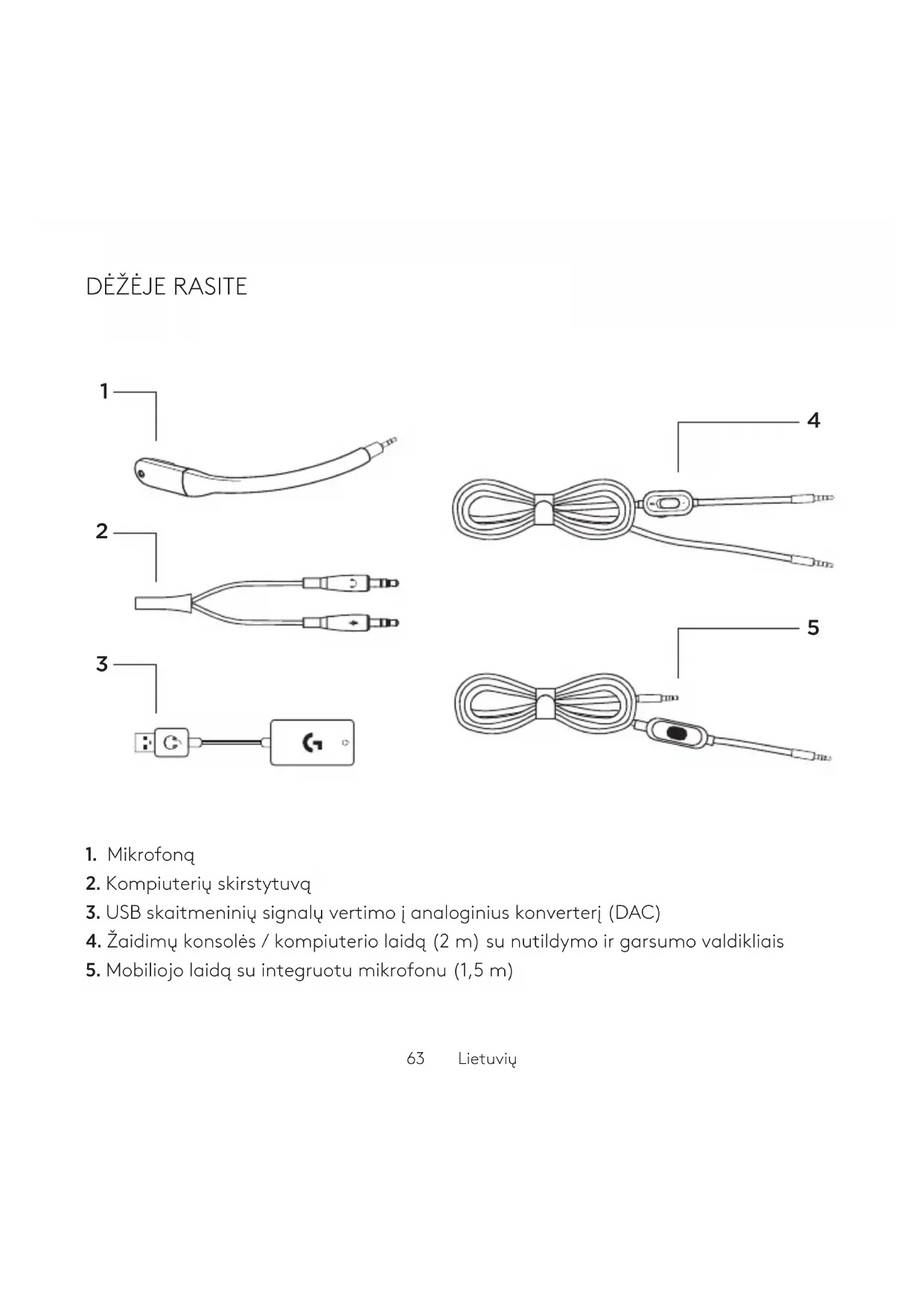 5. Mobiliojo laidą su integruotu mikrofonu (1,5 m)64 Lietuvių