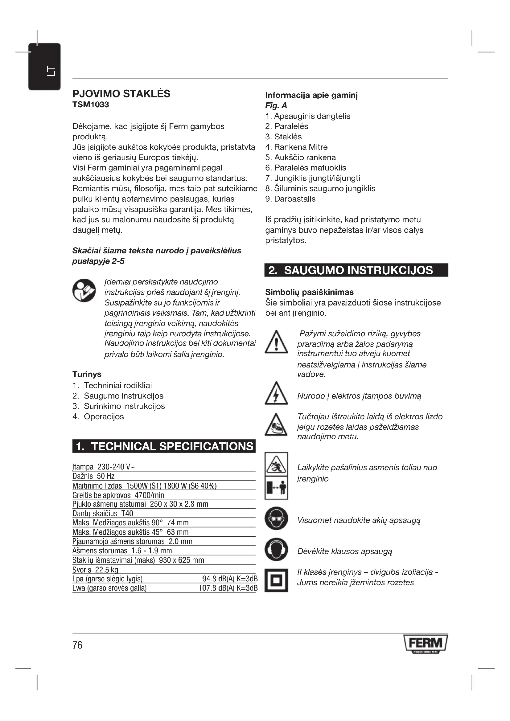 TSM1033 - Pjūklas Ferm - Nemokama naudojimo instrukcija