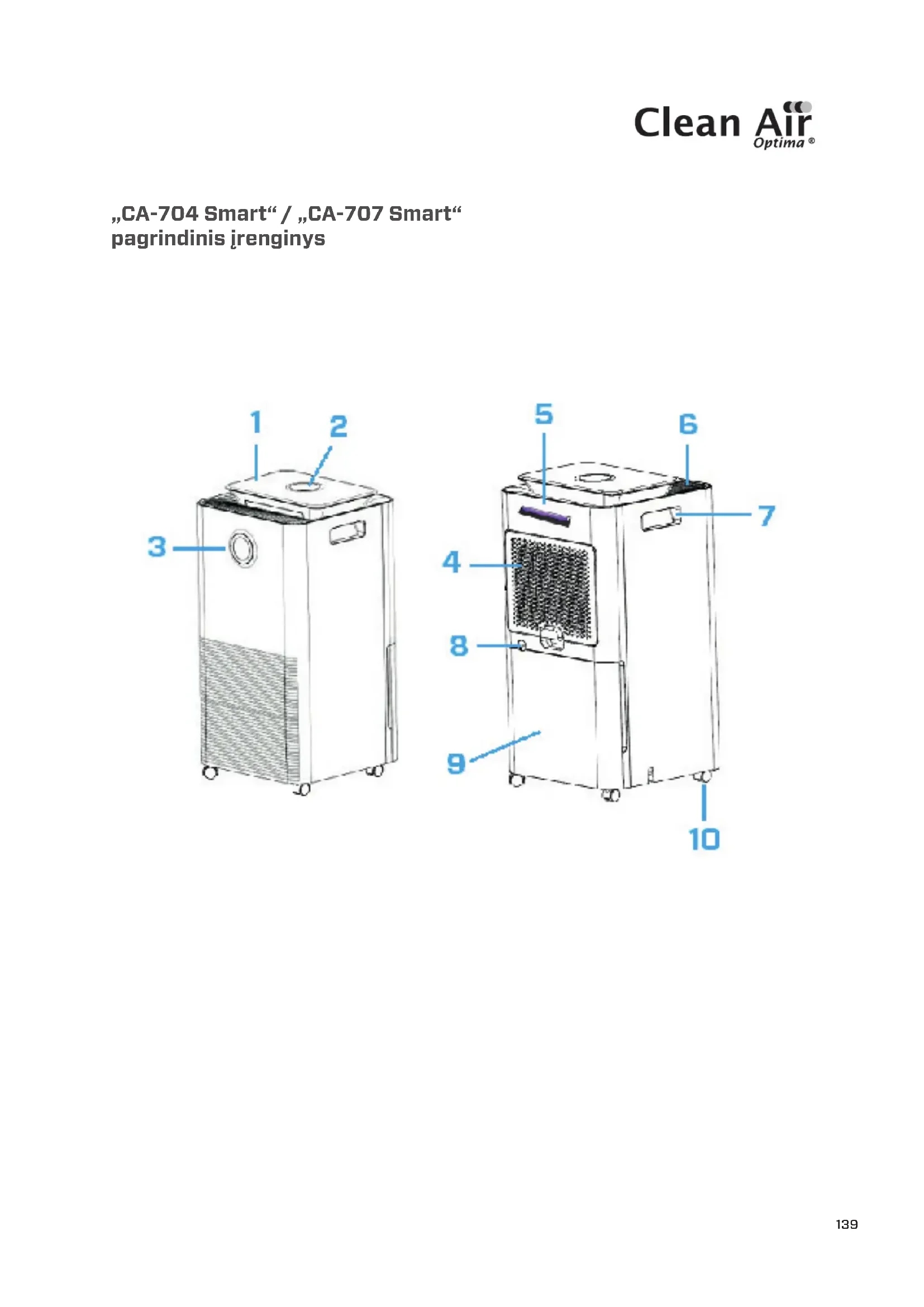 NAUDOJIMO INSTRUKCIJA CA707 Smart Clean Air Optima