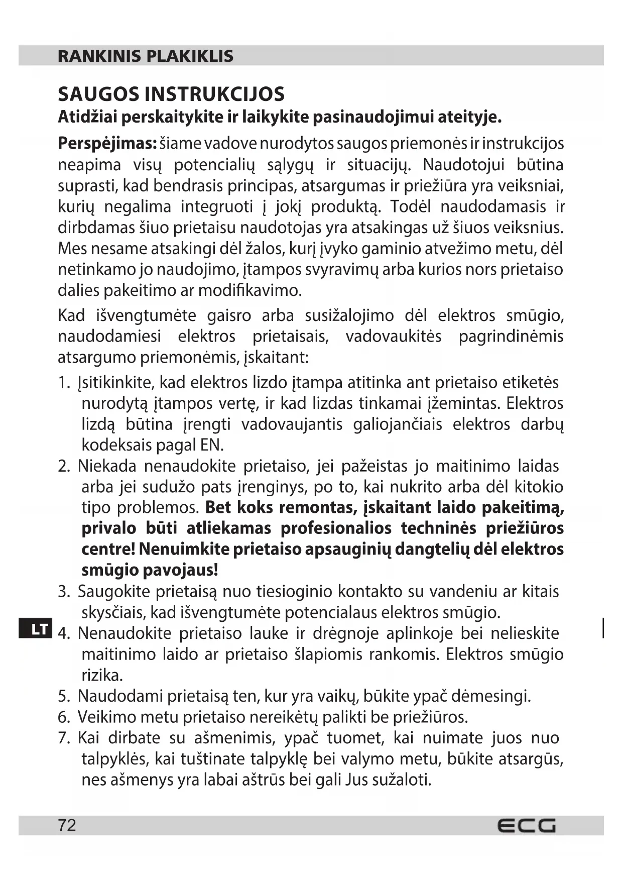 Dėl neteisingo naudojimo galima susižaloti. Šis prietaisas skirtasLT