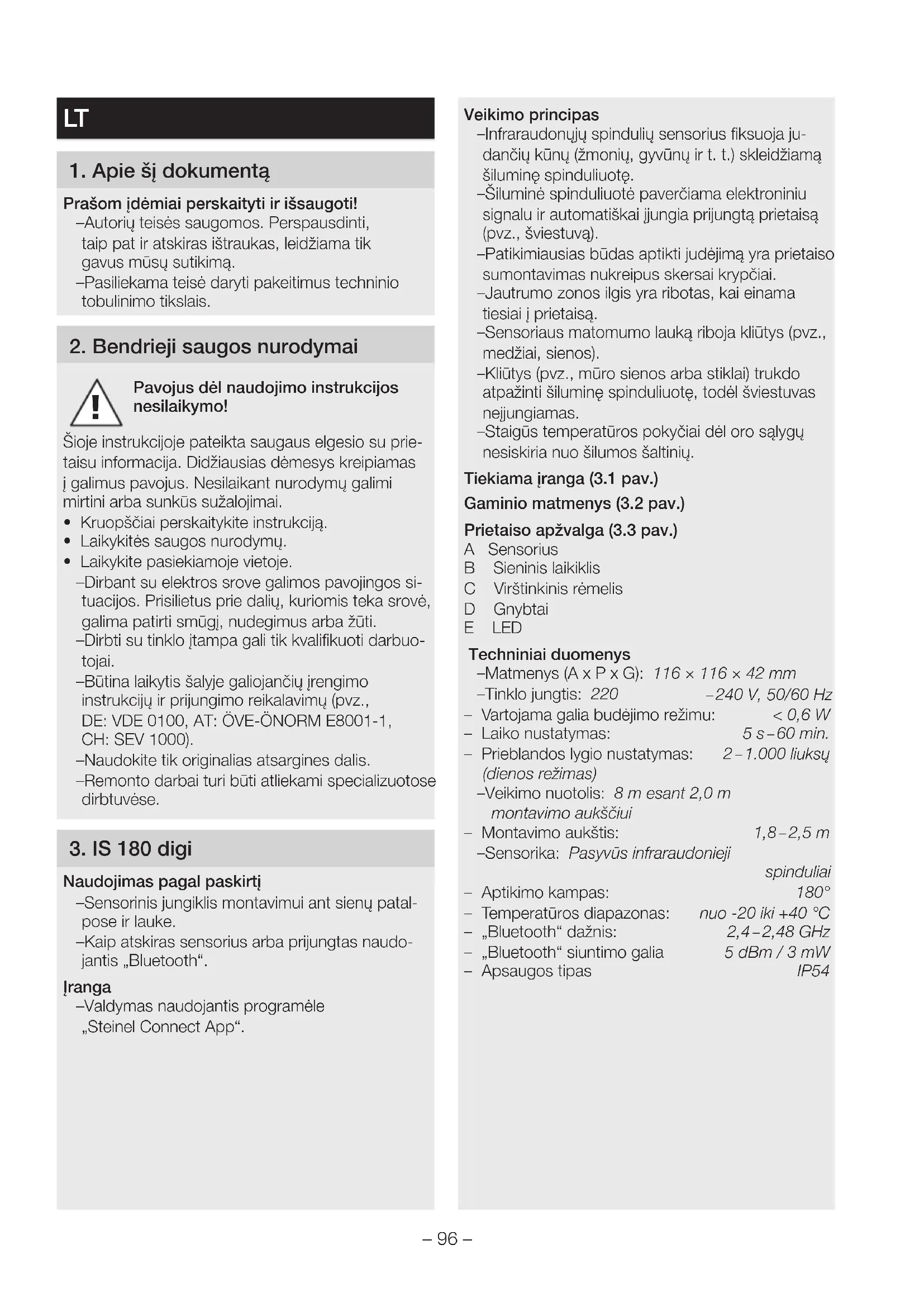 NAUDOJIMO INSTRUKCIJA IS 180 Digi STEINEL