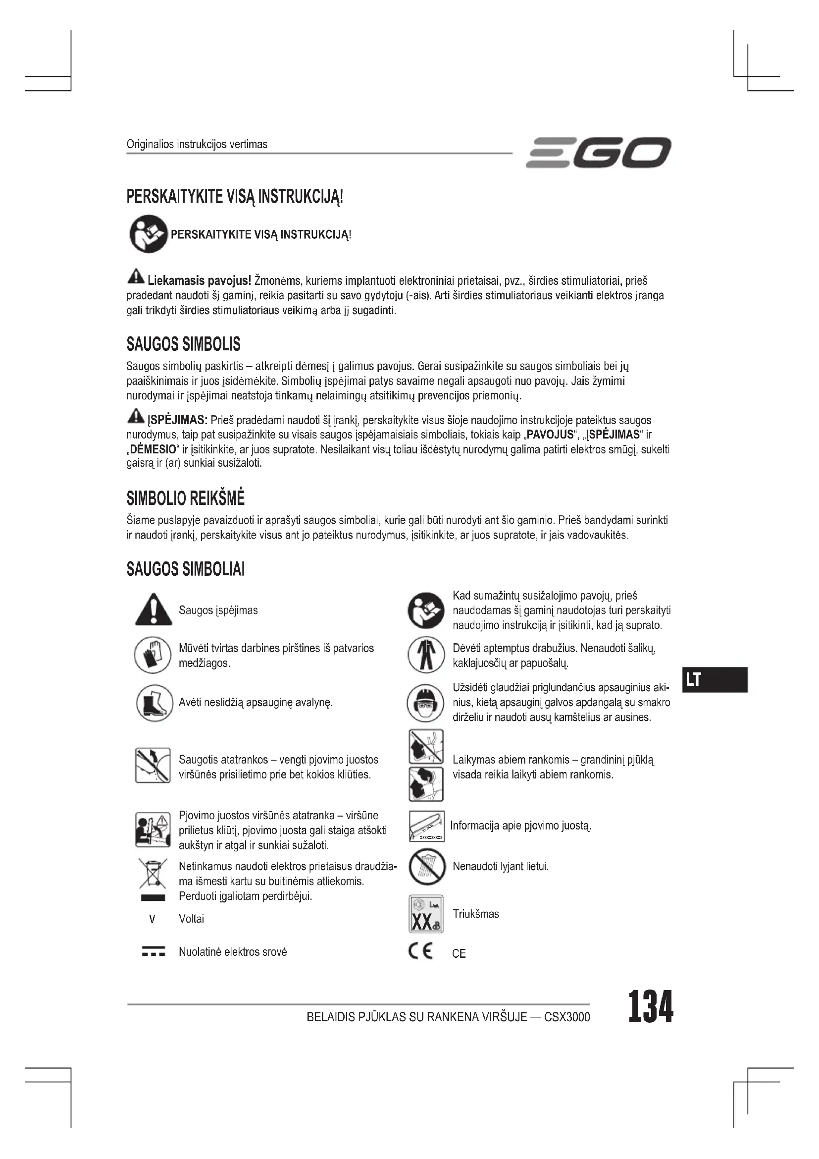 NAUDOJIMO INSTRUKCIJA CSX3000 EGO