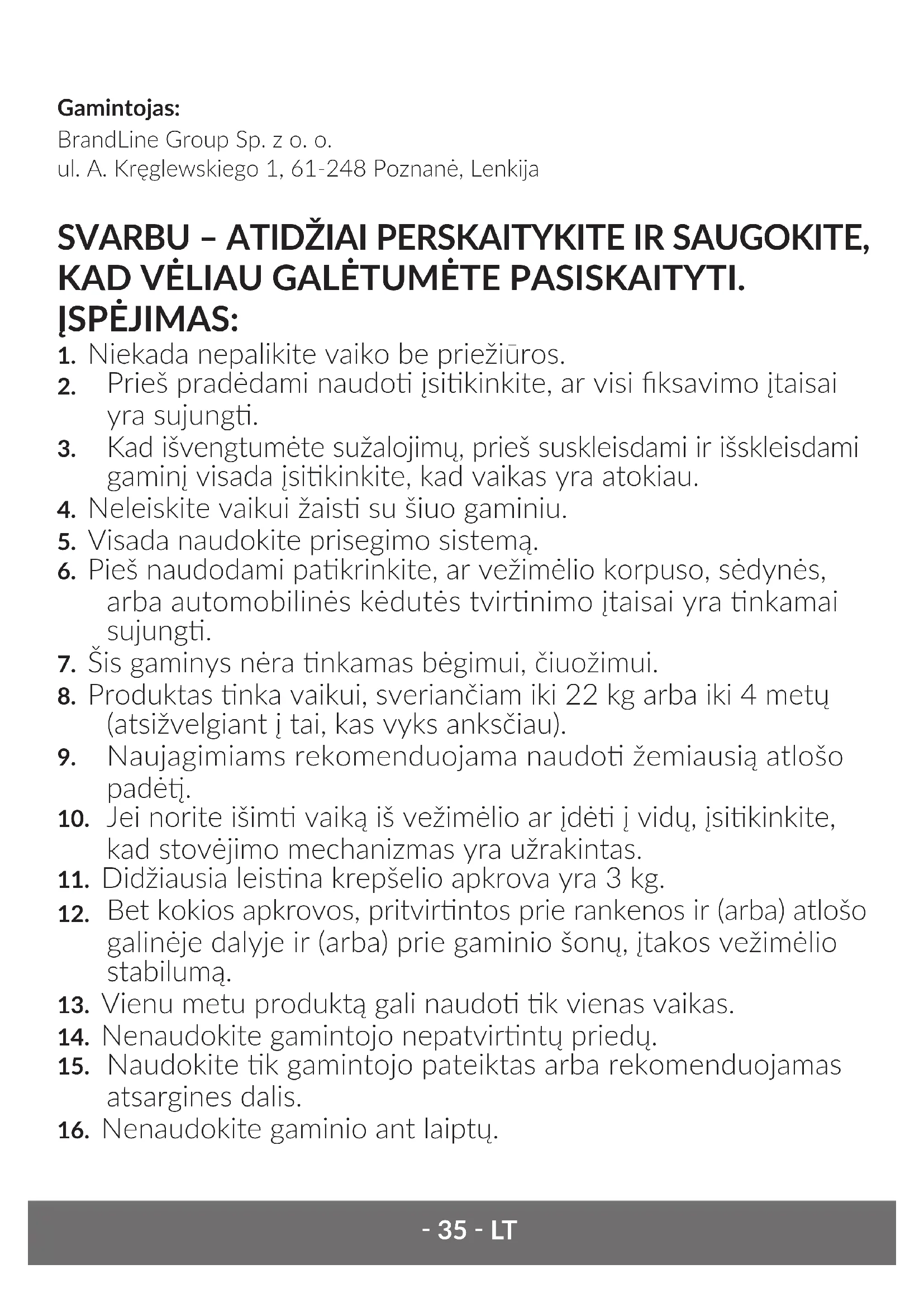 Před použim zkontrolujte, zda jsou připevňovací zařízení Atskiros vežimėlio dalys turi bū reguliariai krinamos dėl funkcionalumo, atsparumo ir galimų pažeidimų. Atsiradus gedimams, kreipkitės į įgaliotą techninės priežiūros centrą. Nuotraukos skirtos k informaciniais kslais, kroji gaminių išvaizda gali skirs nuo pateiktos nuotraukose. LT | CS‑ 39 ‑ CS lůžka nebo sedačky nebo autosedačky správně zaklesnuta.