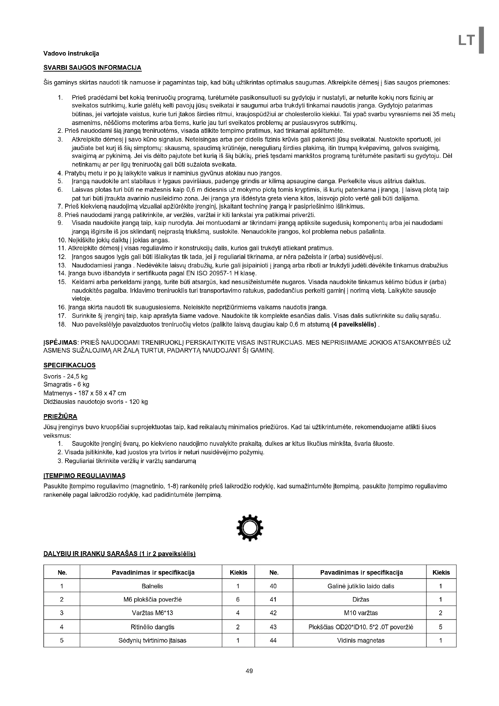 - Saugokite jrengin svaru, po kiekvieno naudojimo nuvalkyite prakaita, dulkes ar kitus likucius minksta, svaria sluste.