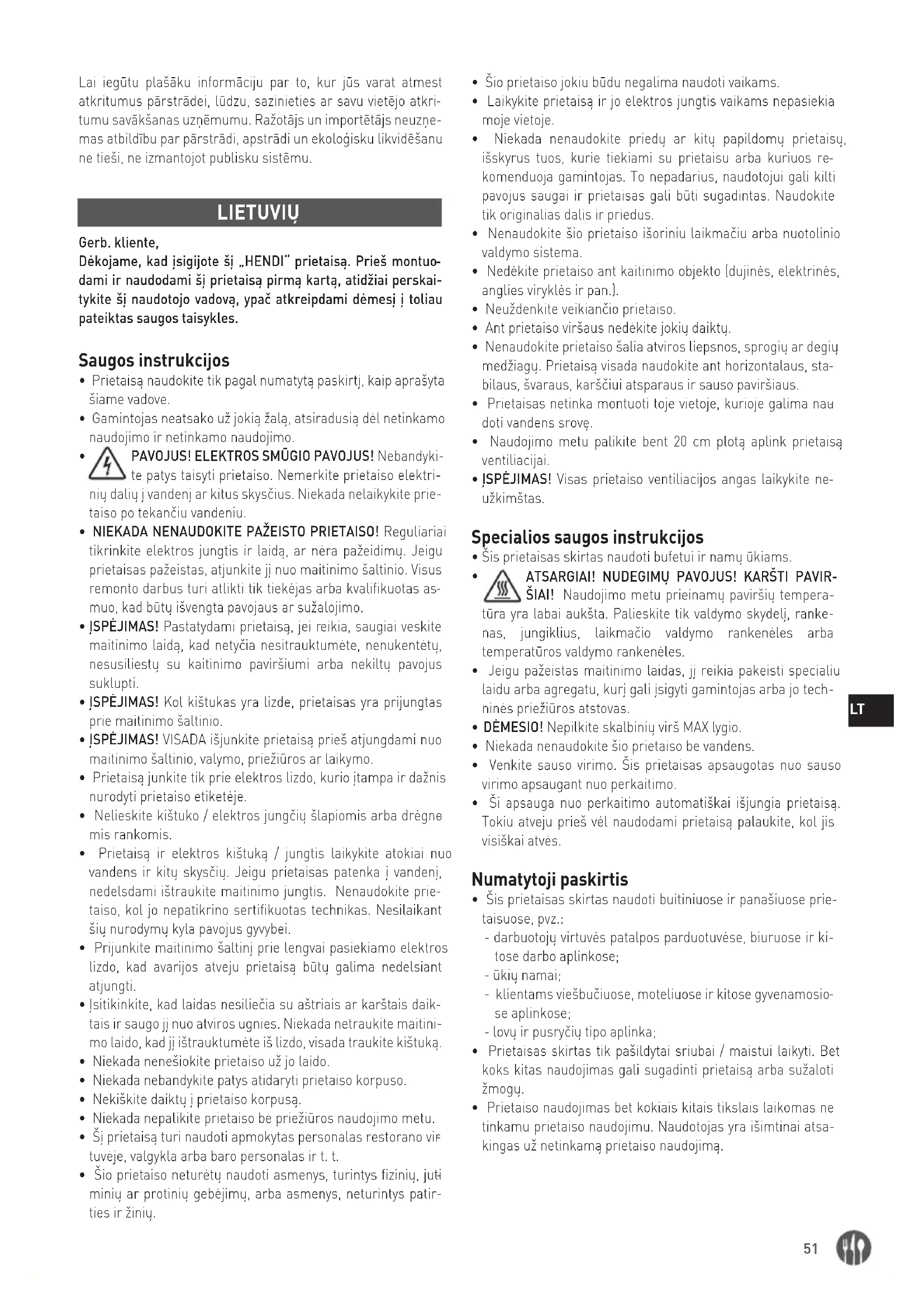 - Laikykite naudotojo vadovą ateičiai. PASTABA! Dėl gamybos liekanų prietaisas gali skleisti lengvą kvapą per pirmuosius kelis naudojimo būdus. Tai yra normalu ir nerodo jokio defekto ar pavojaus. Patikrinkite, ar prietaisas gerai vėdinamas. Naudojimo instrukcijos