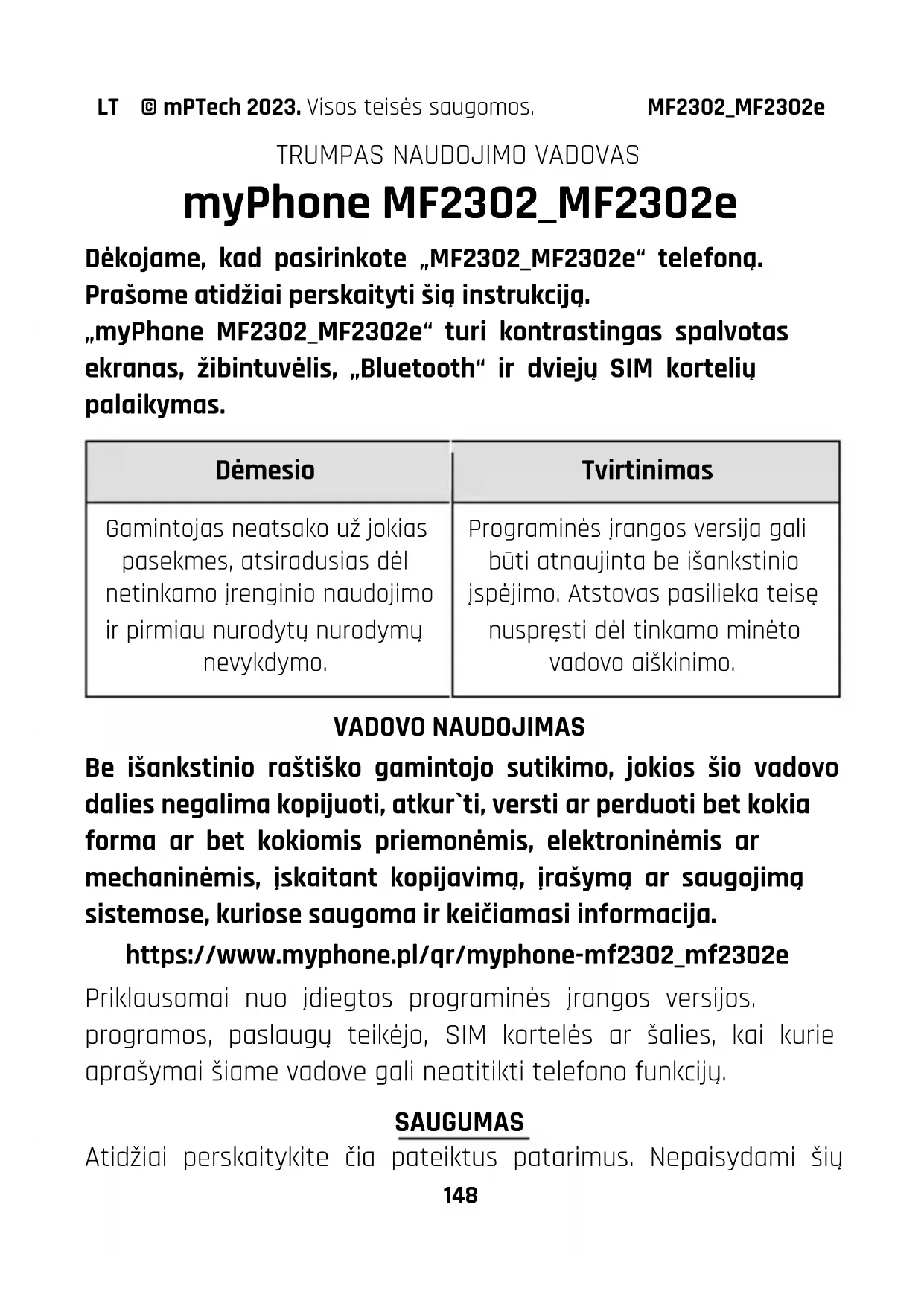 Dékojame, kad pasirinkote „MF2302_MF2302e“ Telefonq. Prašome atidžiai perskaityti šiq instrukcija.