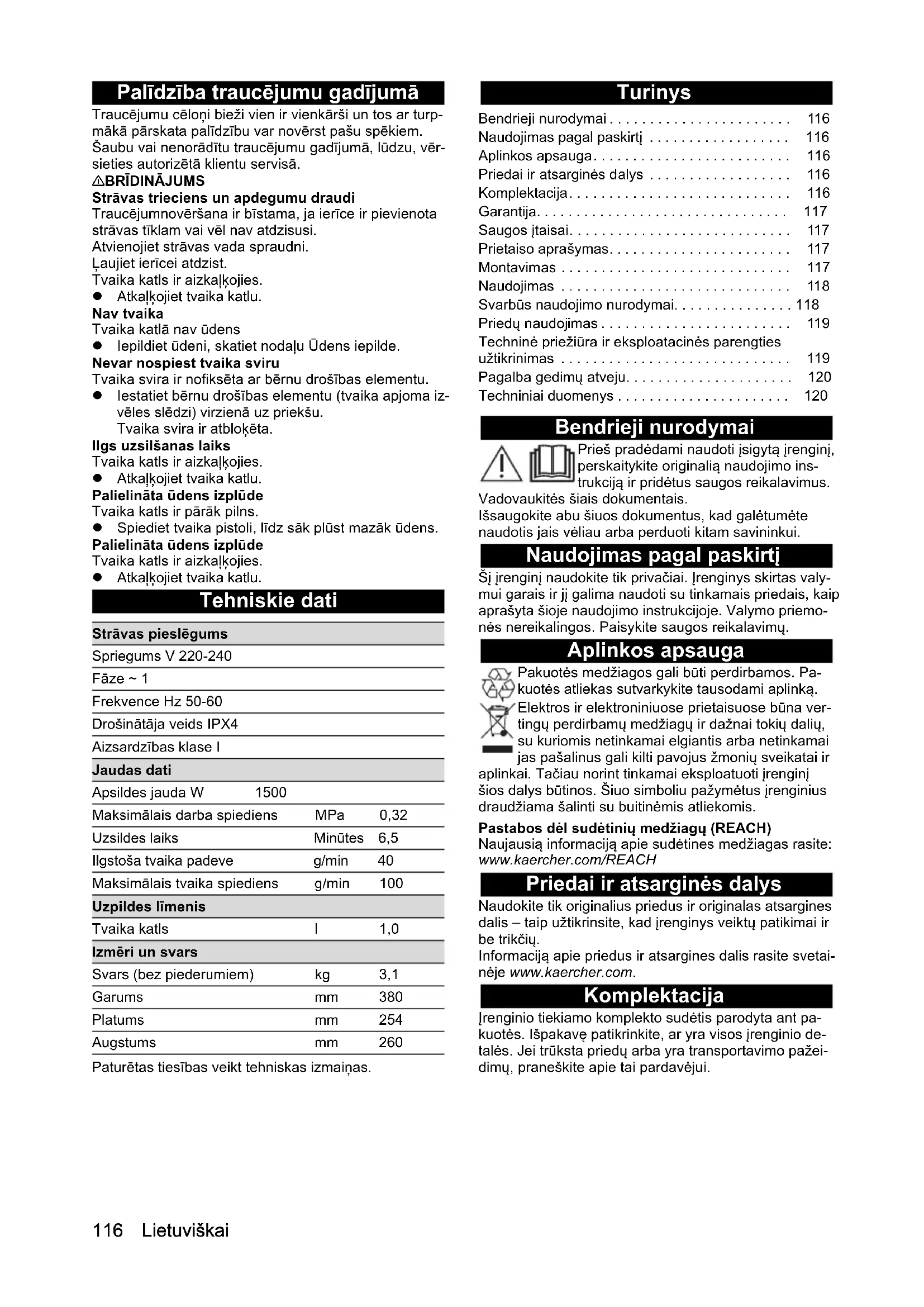 - Svarbūs naudojimo nurodymai p. 118