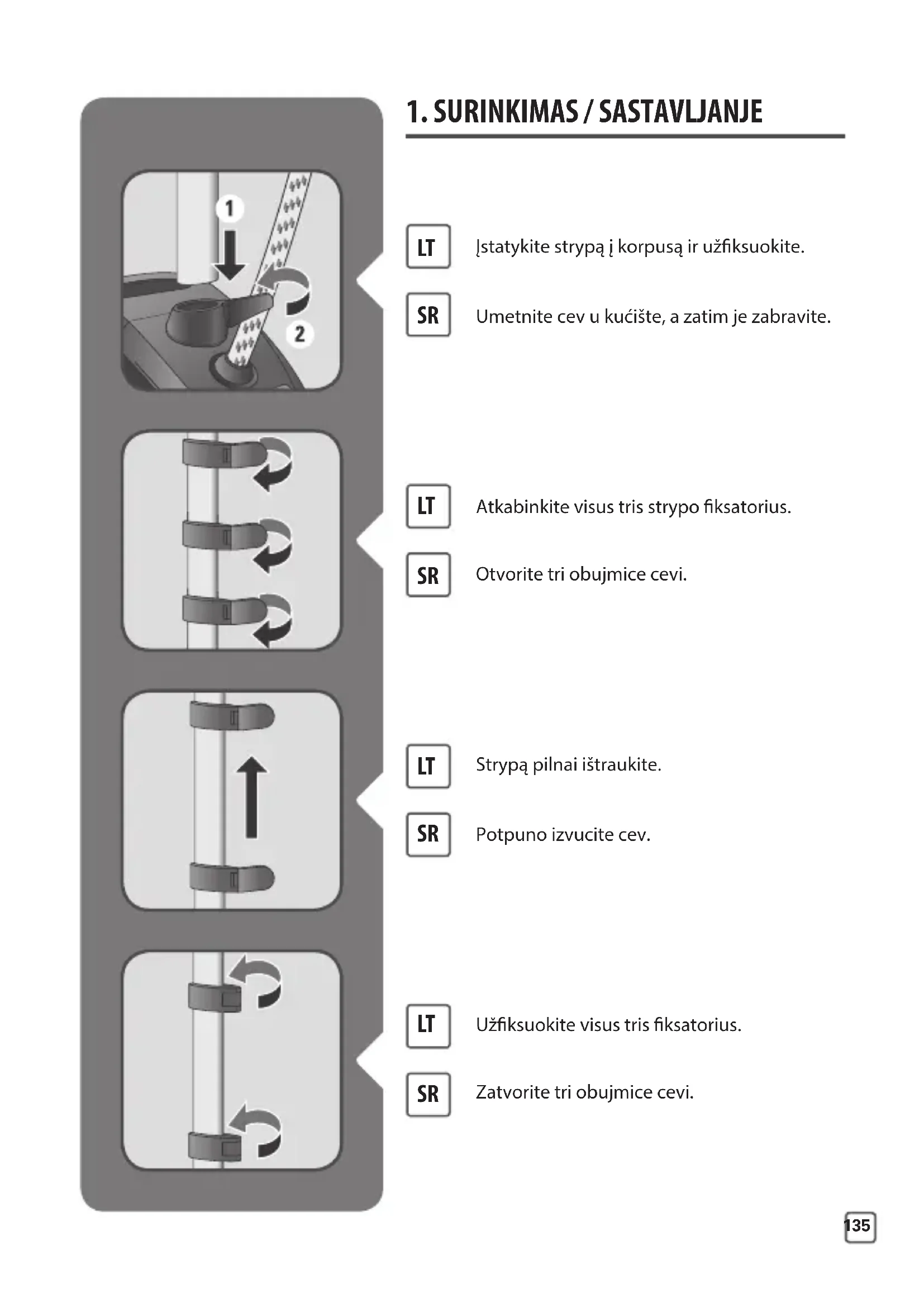 Potpuno izvucite cev. Strypą pilnai ištraukite.