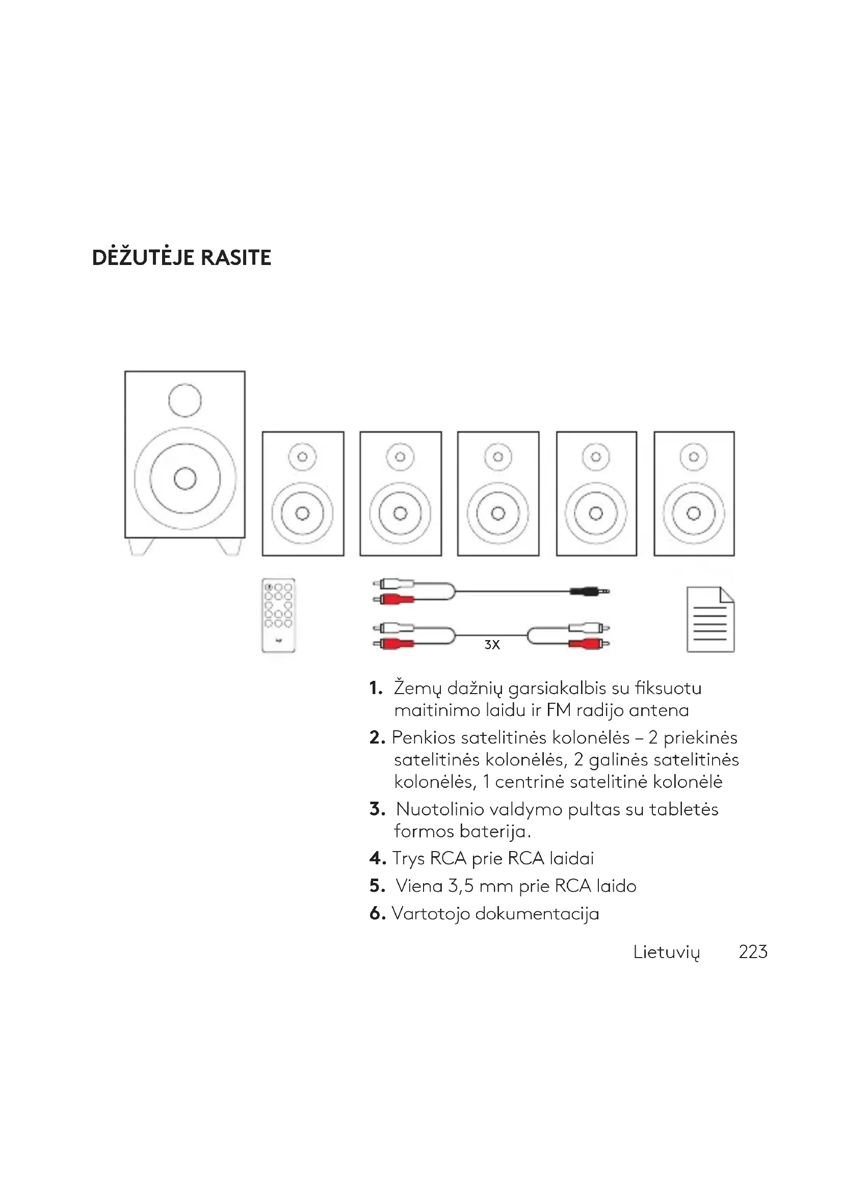 išdėstykite kiekvieną galinį garsiakalbį pakreipę 120 laipsnių nuo centro.226 Lietuvių