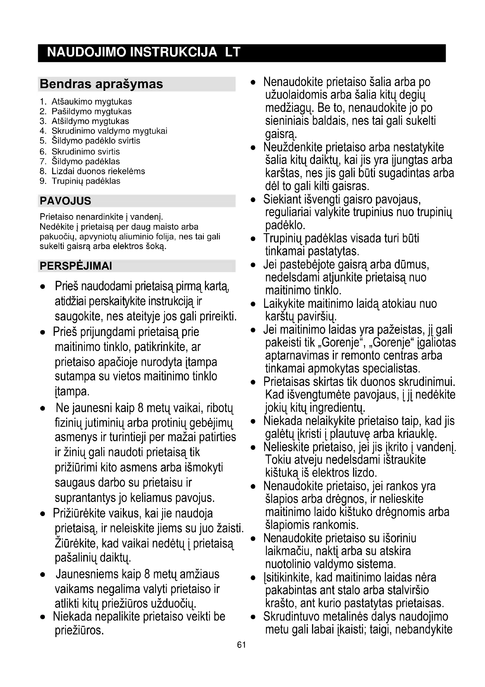 - Prietaisas skirts tik duonos skrudinimui. Kad isvengtumete pavojaus, [ji]nedekite jokiü kitü ingredientü.