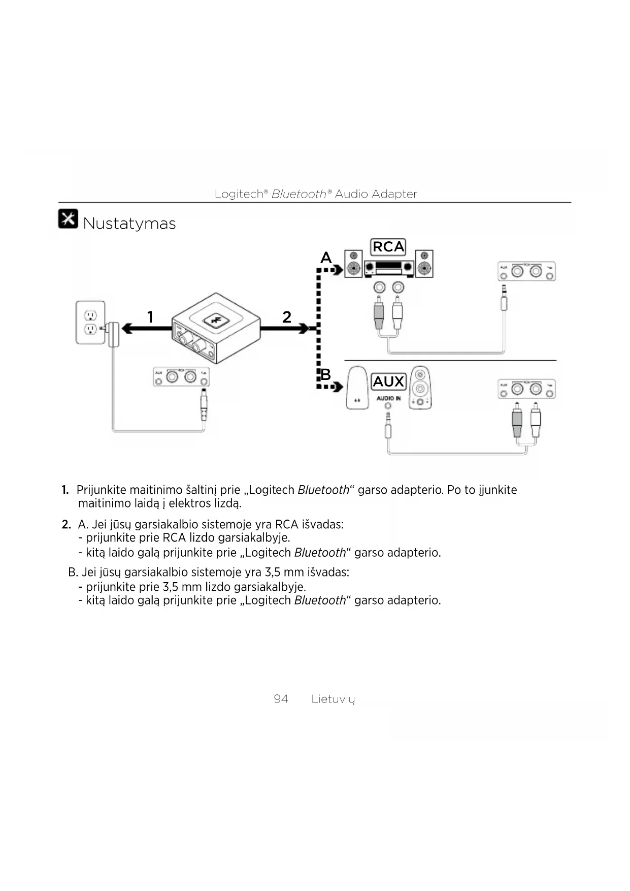 Bluetooth Audio Adapter - Bluetooth imtuvas LOGITECH - Nemokama naudojimo instrukcija