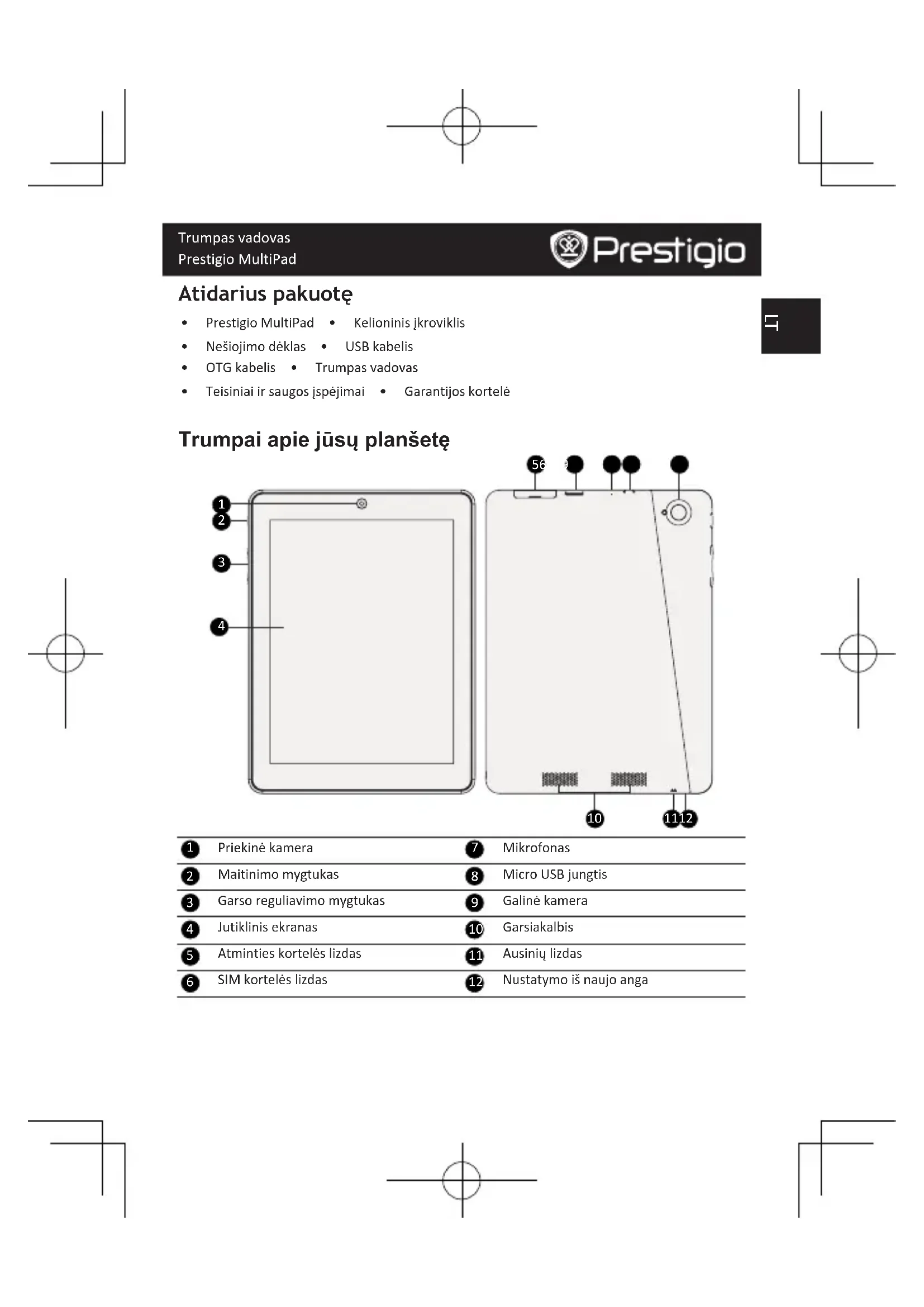 - Teisiniaiirsaugosįspėjimai • Garantijoskortelė Trumpai apie jūsų planšetę
