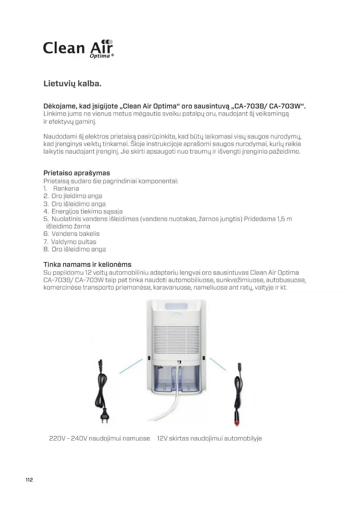 Dékojame, kad jsigijote „Clean Air Optima“ oro sausintuva „CA-703B/ CA-703W". Linkime jums ne vienus metus megautis sveiku patalpu oru, naudojant ši veiksminga ir efektyvu gaminj.