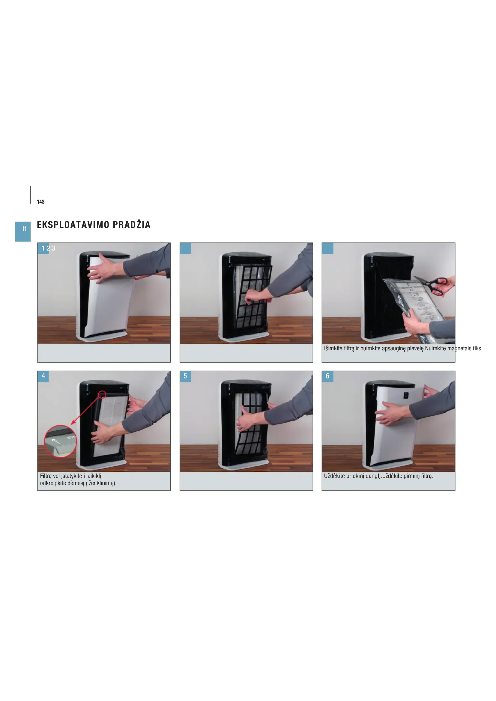 - Filtrpa pakeiskite vadovaudamiesi 148 puslapype pa- teiktais nurodymais.