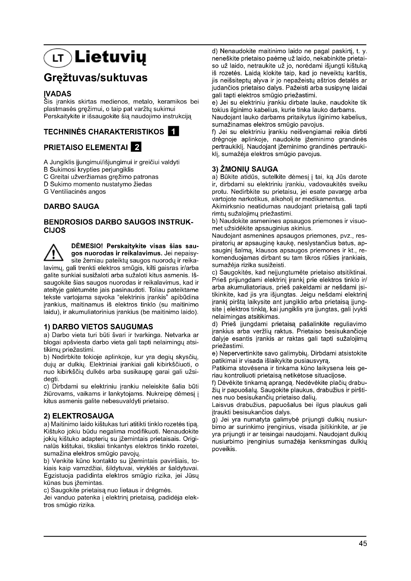 DARBU SAUGOS NUORODOS DIRBANTIEMS SU GREŽTUVAIS/SUKTUVAIS