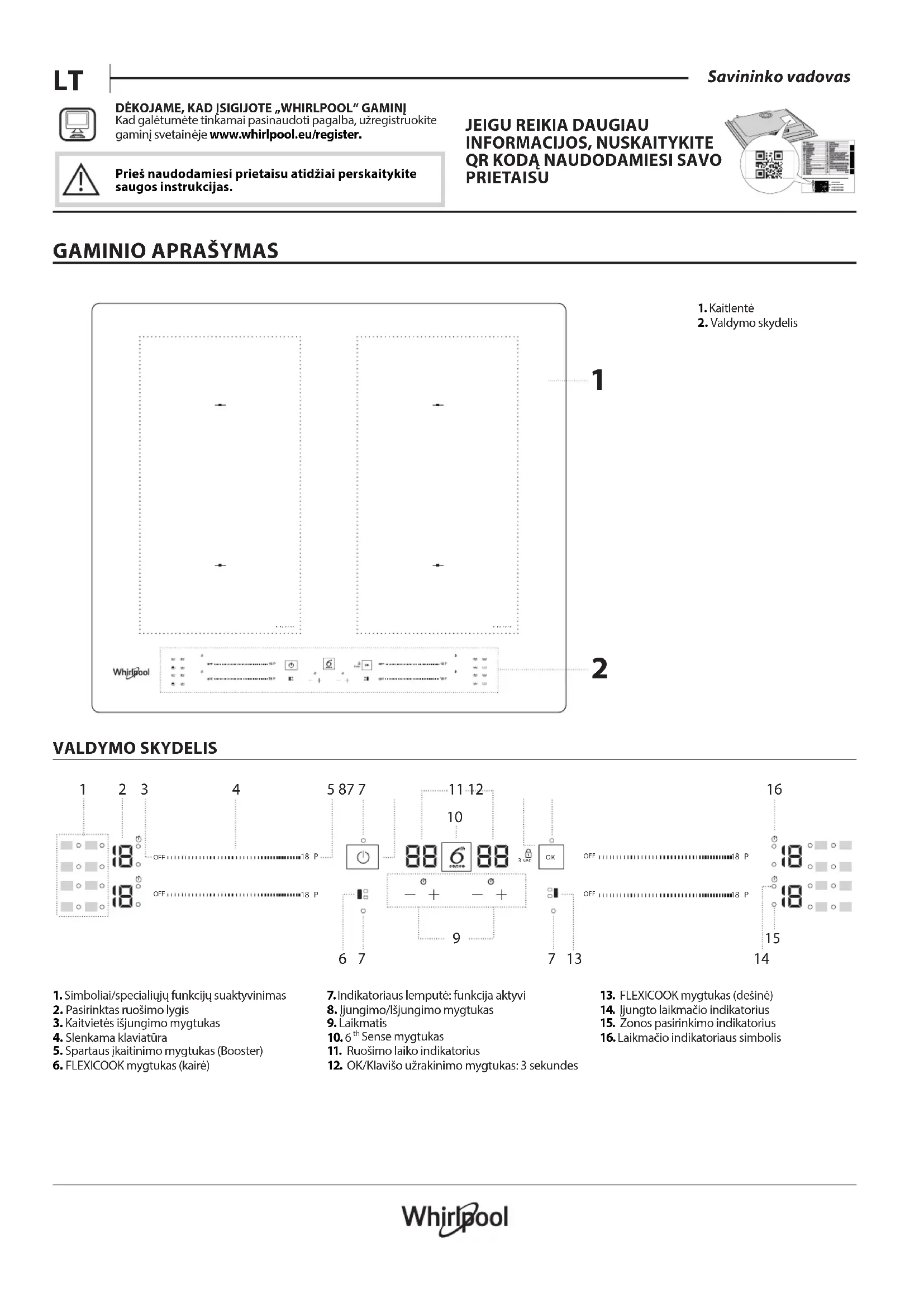 Kad galėtumėte tinkamai pasinaudoti pagalba, užregistruokite gaminį svetainėje www.whirlpool.eu/register.
