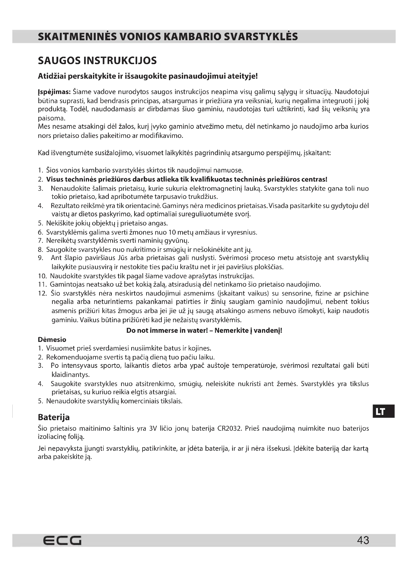 - Sio svarstyklès nera neskirtos naudojimui asmenims (jskaitant vaikus) su sensorine, fizine ar psichine negalia arba neturintiems pakankamai patirties ir ziniu saugiam gaminio naudojimui, nebent tokius asmenis priziuriKitaszmogus arba jei jie uzju sauga atsakingo asmens nebuvo ismokyti, kaip naudotis gaminiu. Vaikus butina priziureti kad jie nezaistu svarstyklémis.